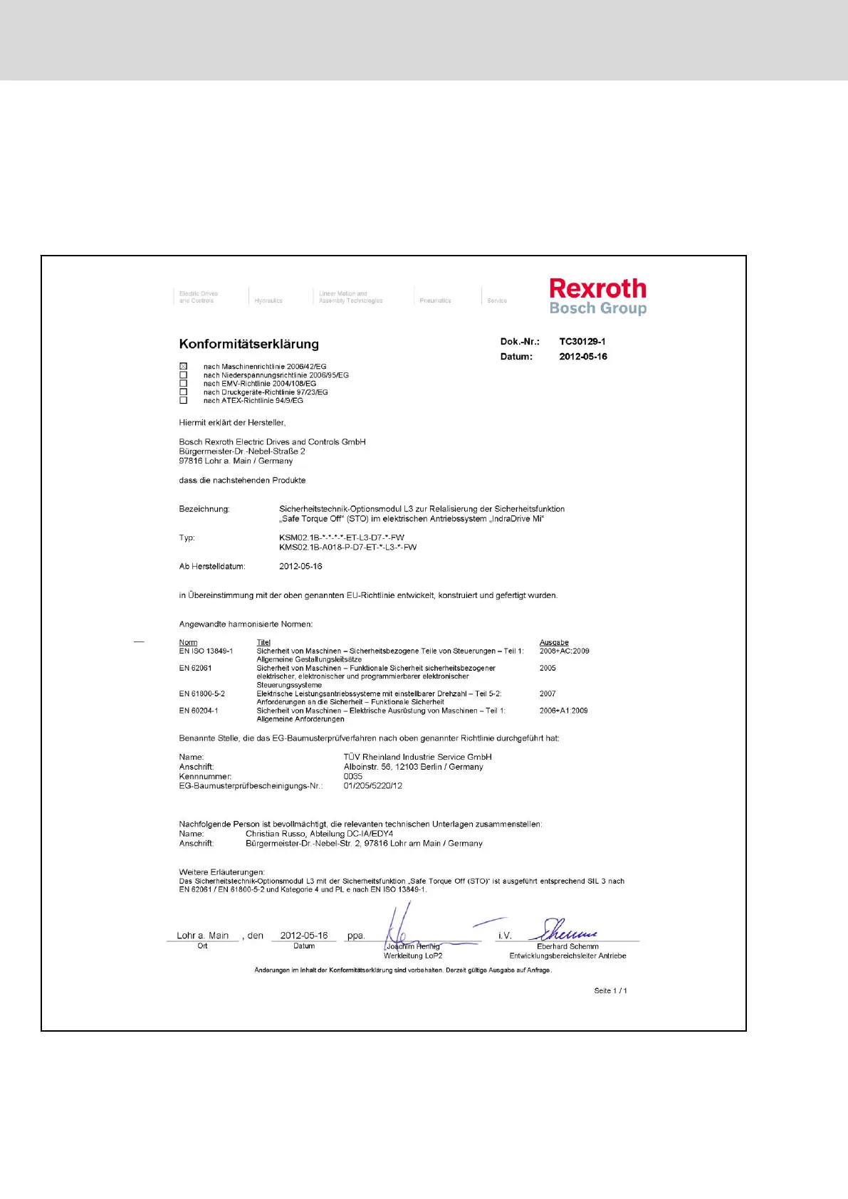 Rexroth IndraDrive Integrated Safety Technology "Safe Torque Off" (as of MPx-16)