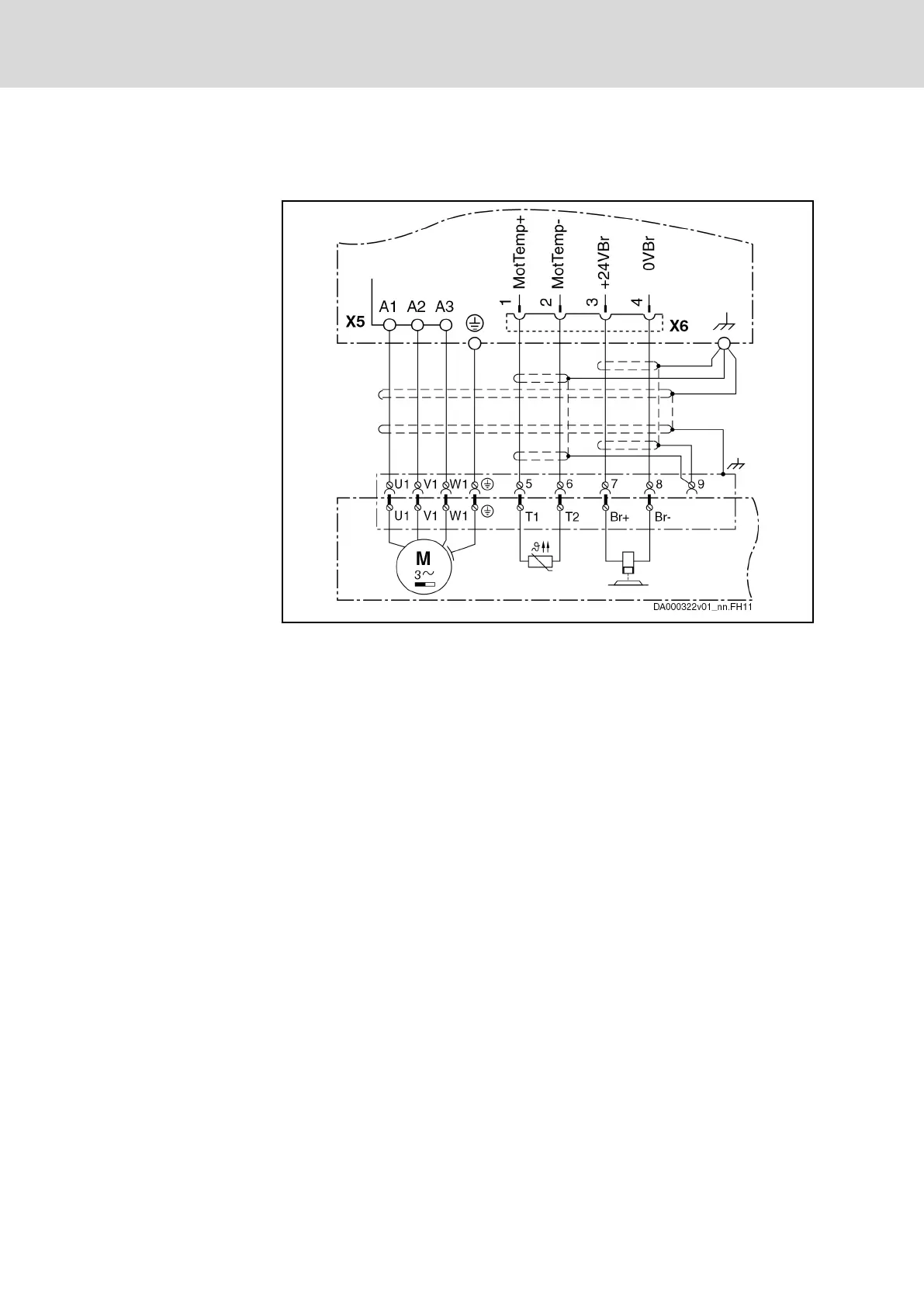 Fig. 12-1: Connection of motor temperature monitoring and motor holding brake