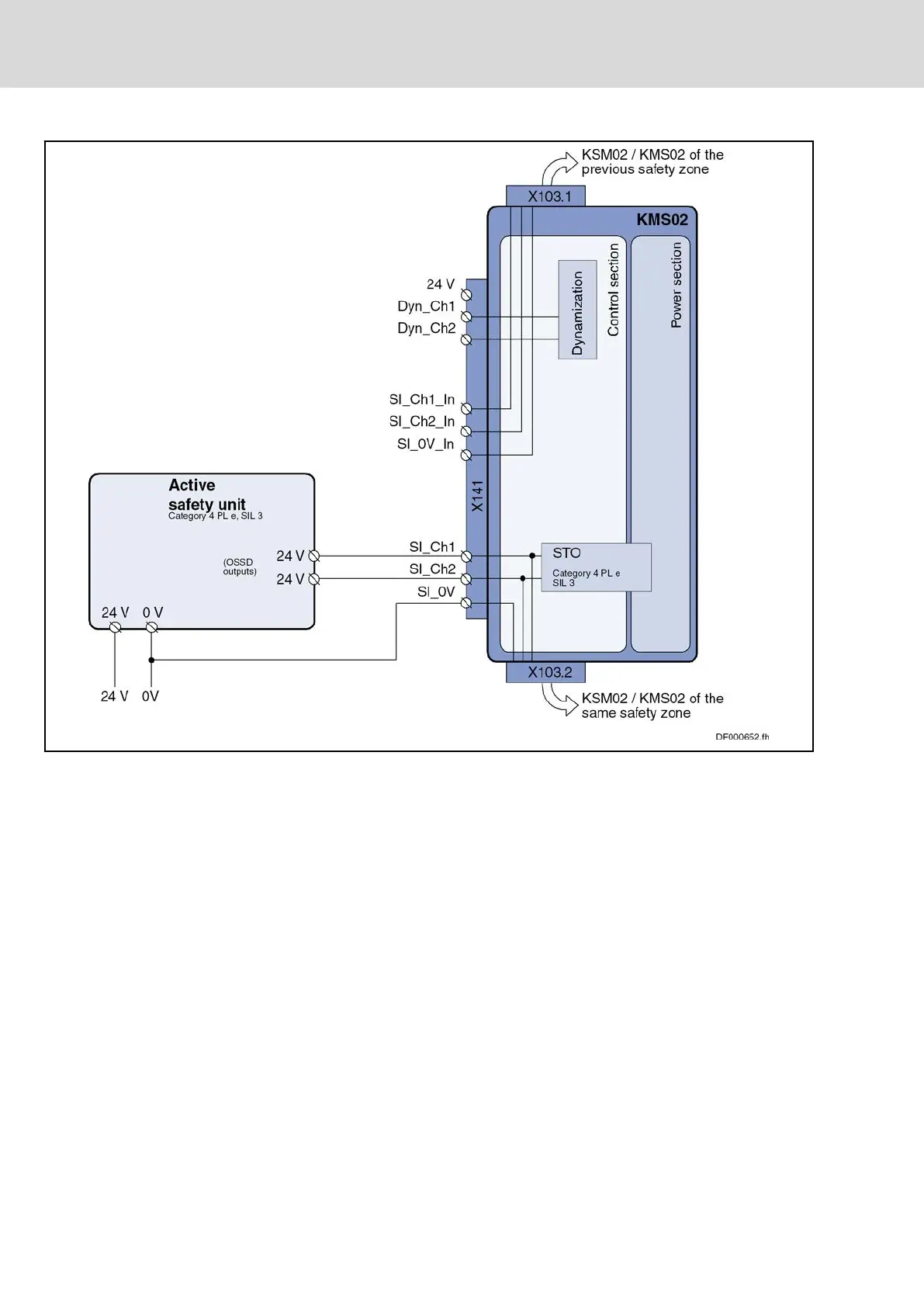 The figure below shows KMS02 as a zone beginner. The E-Stop signal is