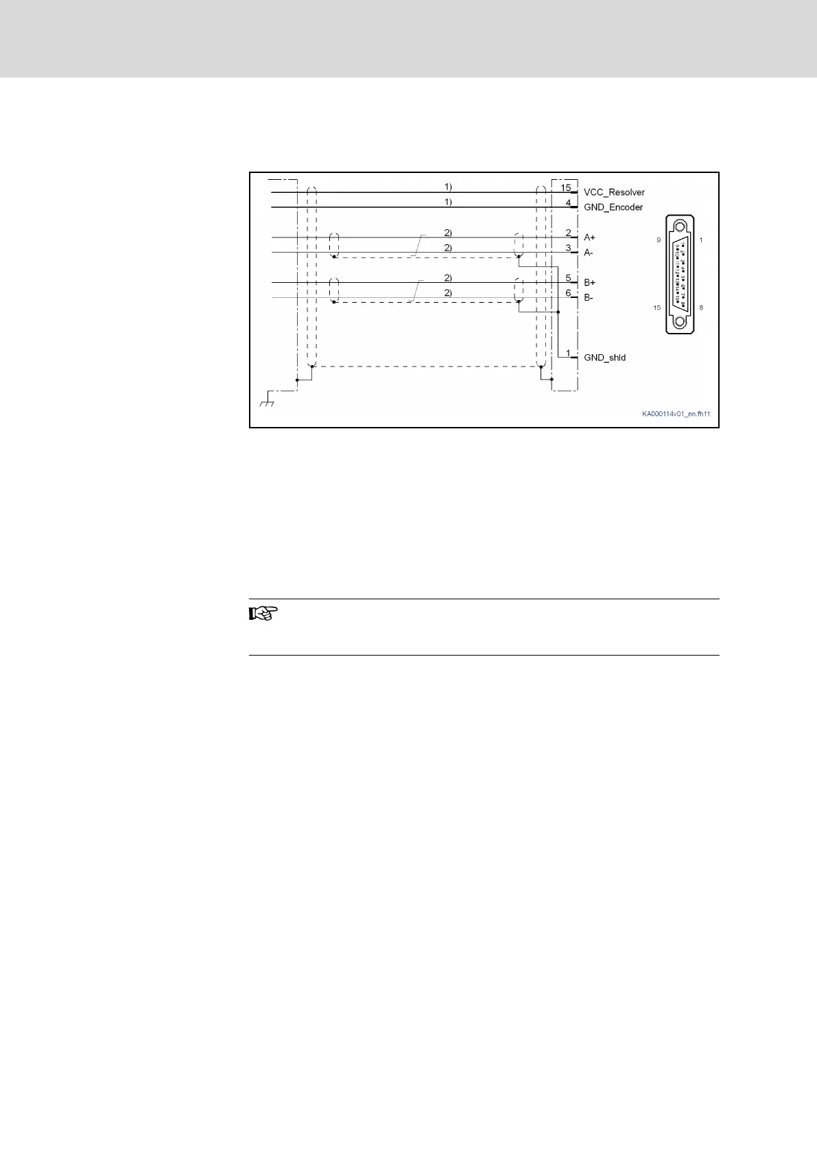 1) Line cross section ≥ 0.5 mm²; observe allowed encoder cable