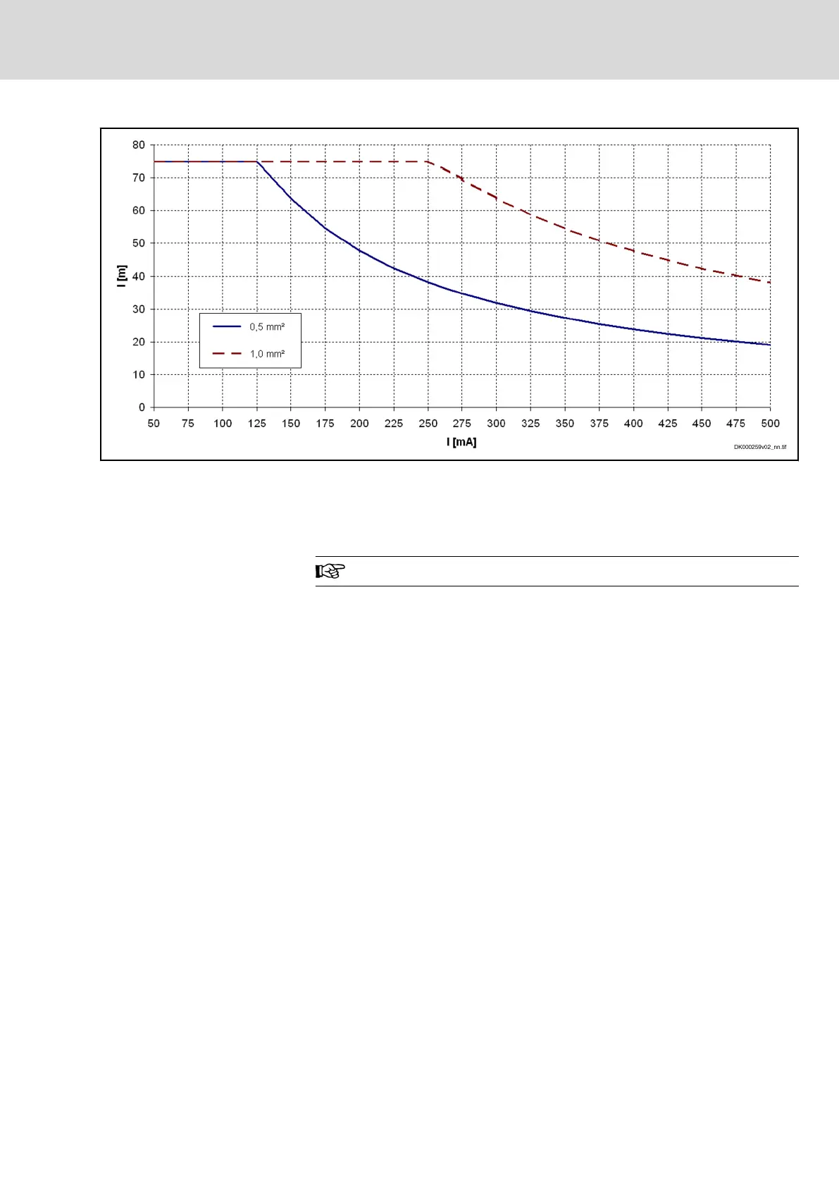 Fig. 8-15: Maximum allowed encoder cable lengths for 12 V encoder systems