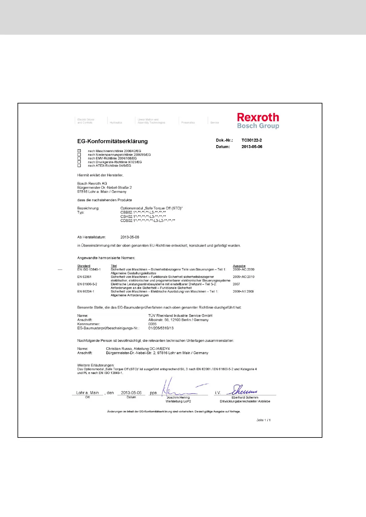 Rexroth IndraDrive Integrated Safety Technology "Safe Torque Off" (as of MPx-16)