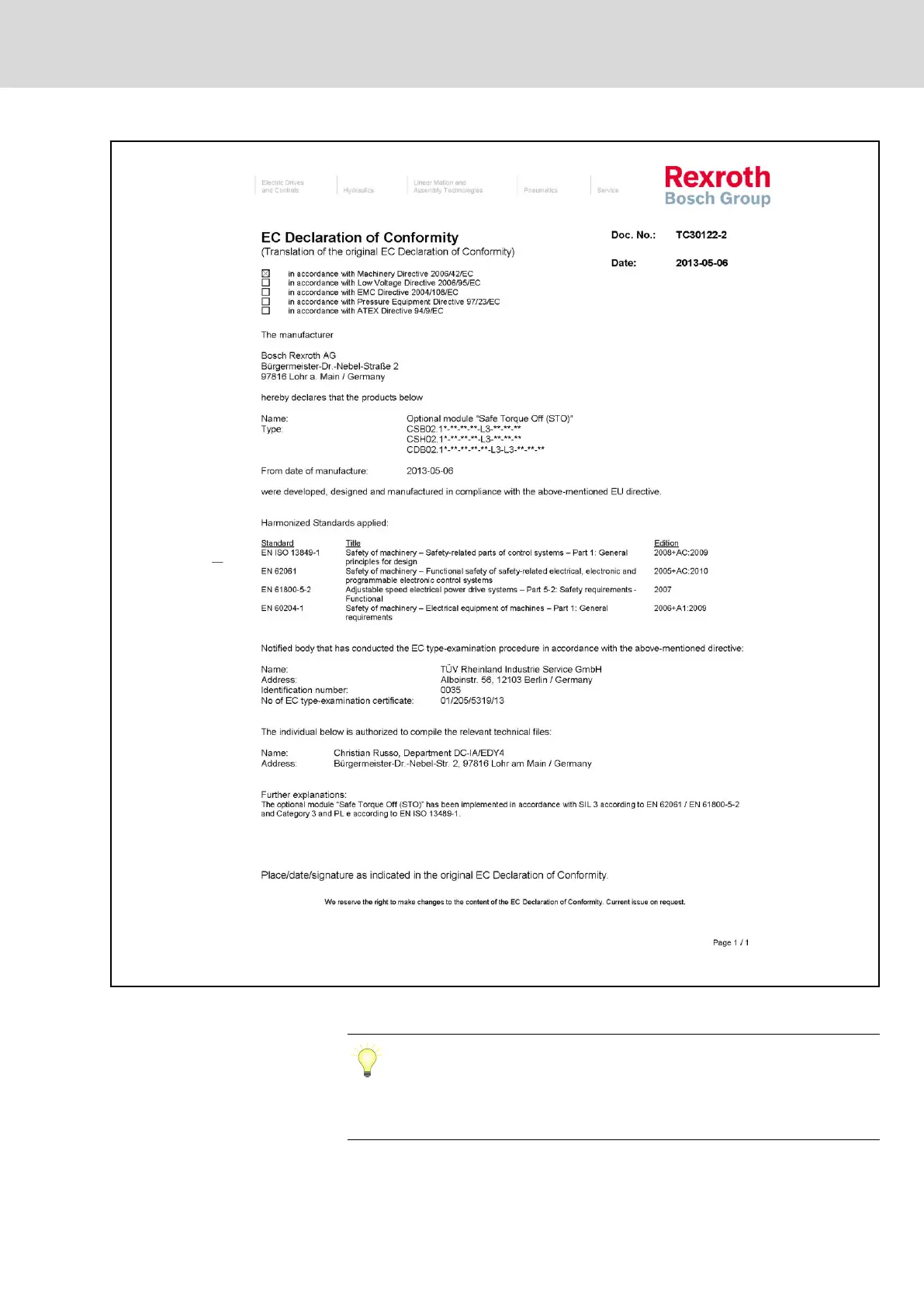 Rexroth IndraDrive Integrated Safety Technology "Safe Torque Off" (as of MPx-16)