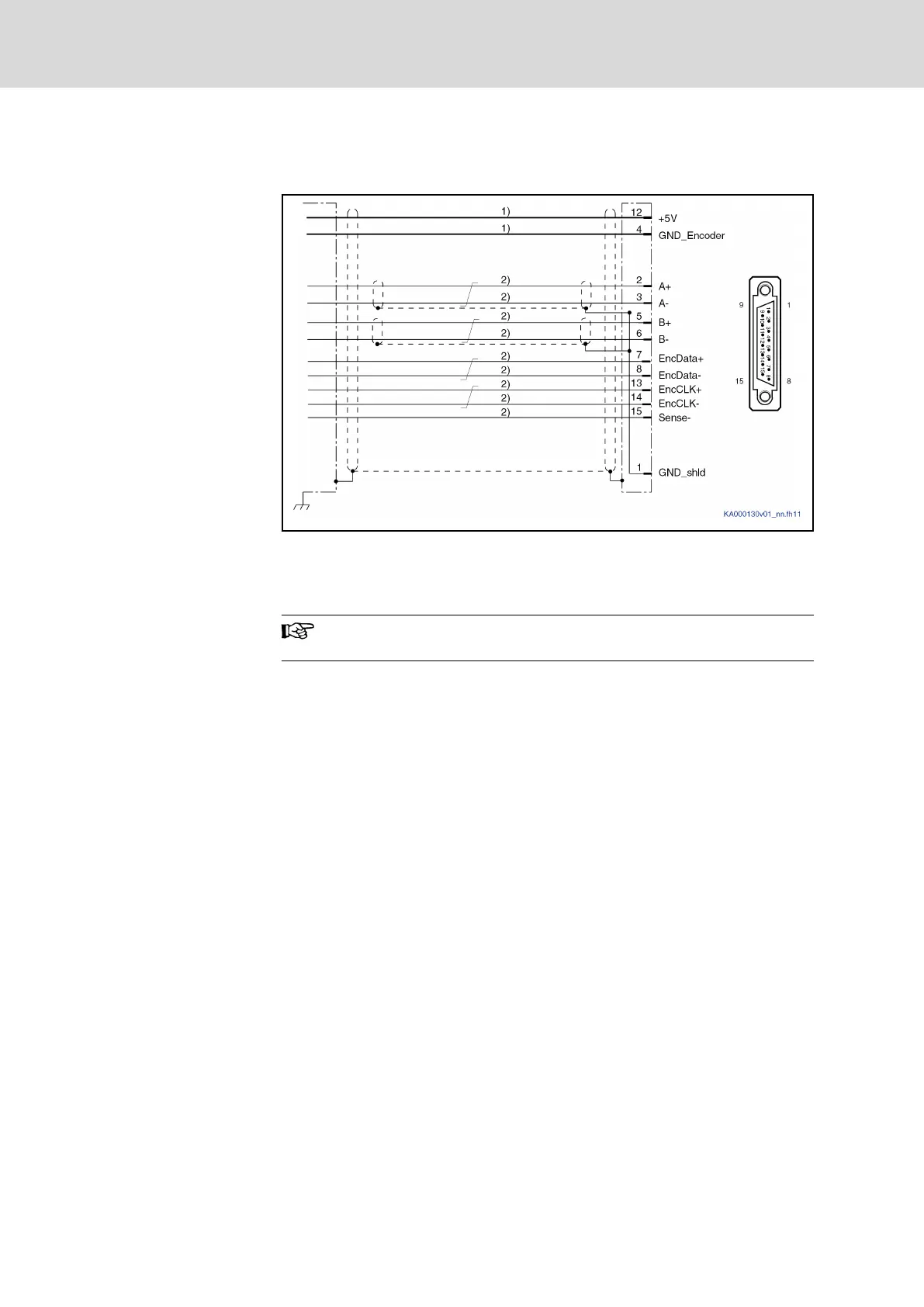 1) Line cross section ≥ 0.5 mm²; observe allowed encoder cable