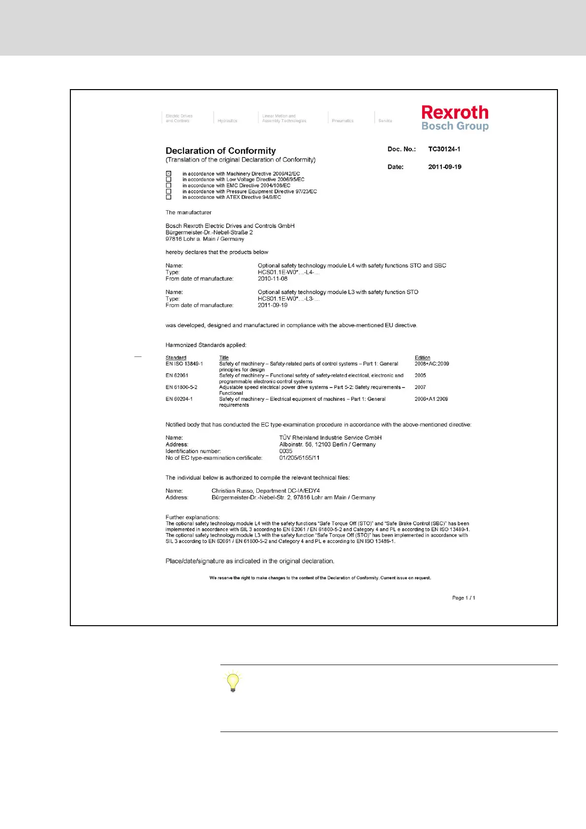 Rexroth IndraDrive Integrated Safety Technology "Safe Torque Off" (as of MPx-16)