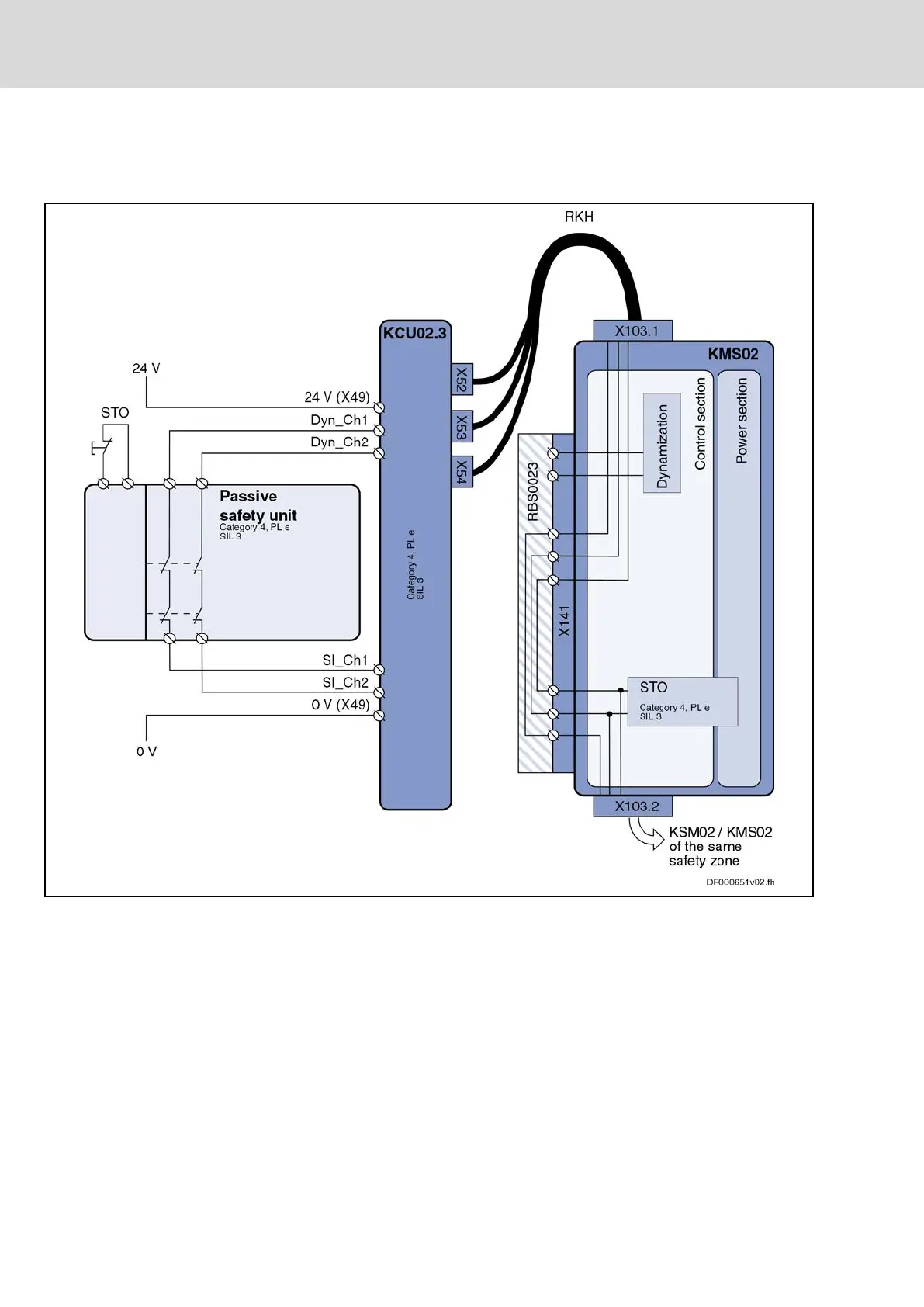 Fig. 7-10: KCU02 with dual-channel wiring and passive safety unit