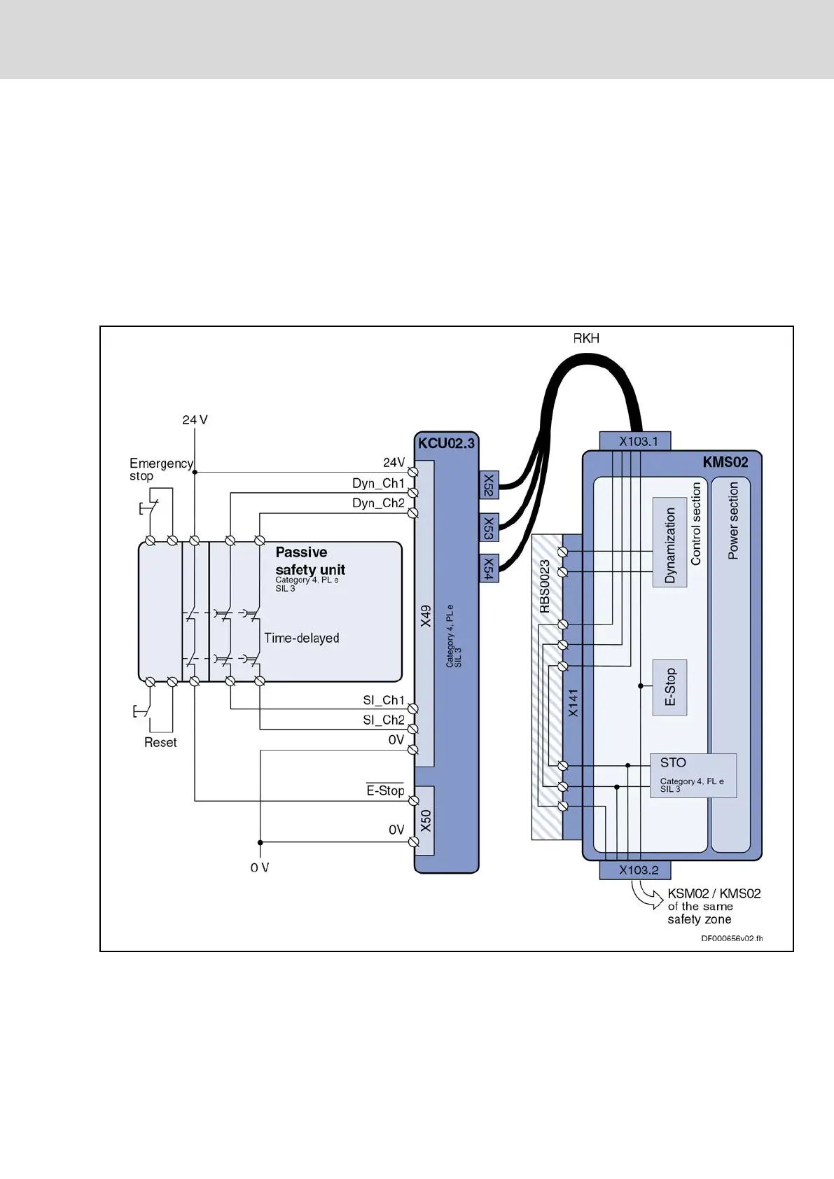 The figure below shows KCU02 as a zone beginner. The E-Stop signal is