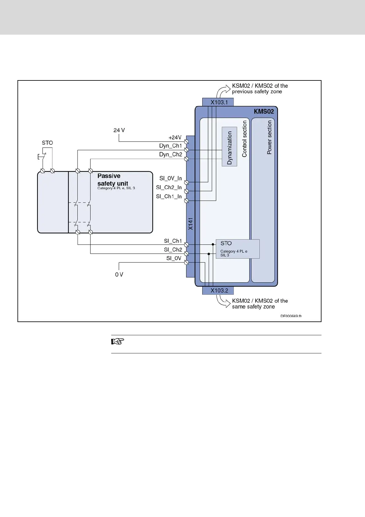 Fig. 7-14: KMS02 with dual-channel wiring and passive safety unit