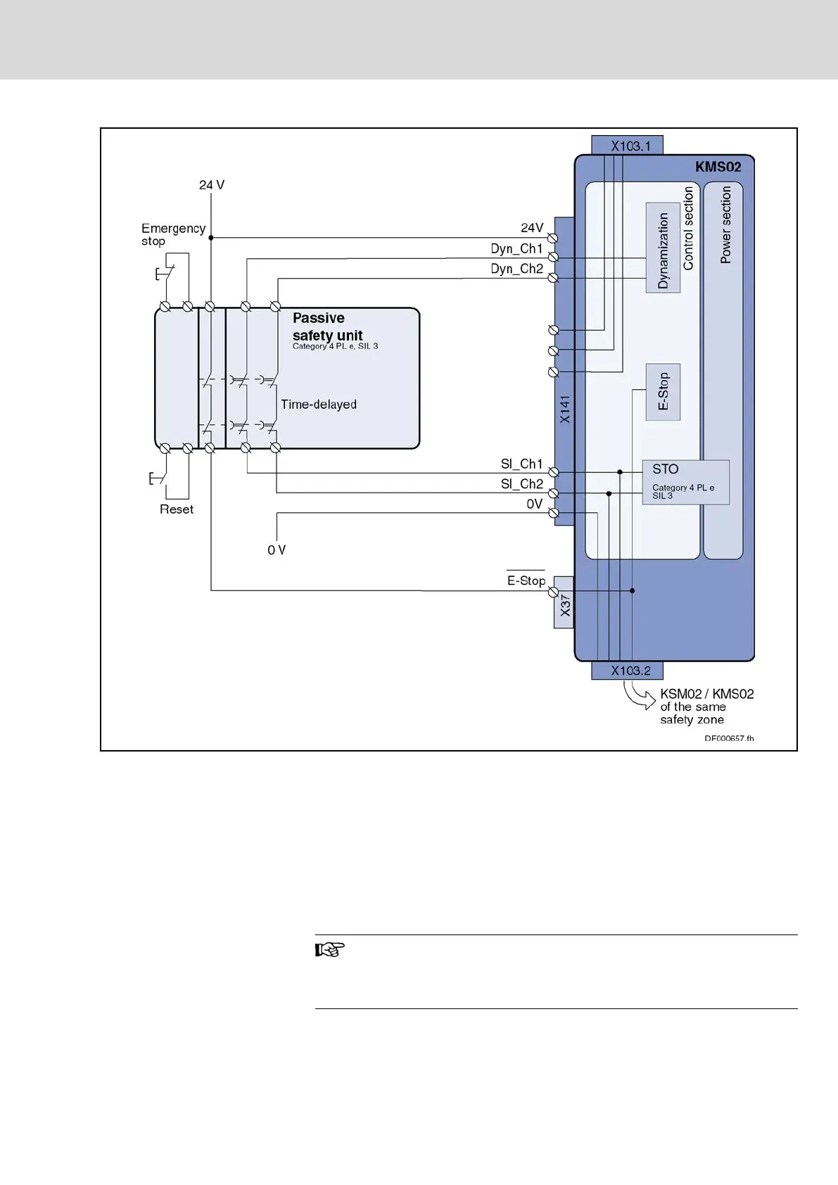 Fig. 7-17: SS1 function via KMS02 with dual-channel wiring and passive safety
