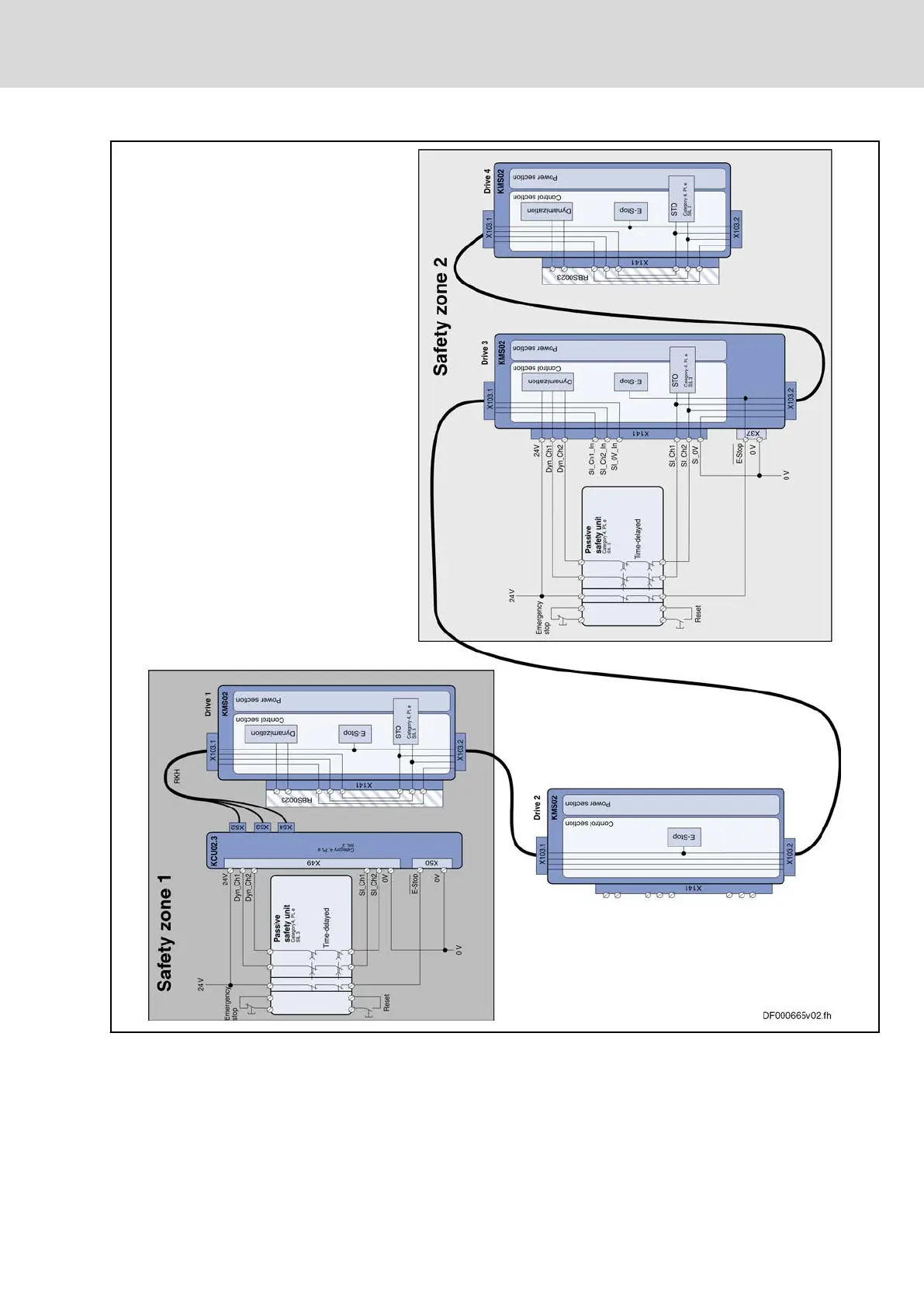 Drive 3 Selection of safety zone 2 via a passive safety unit