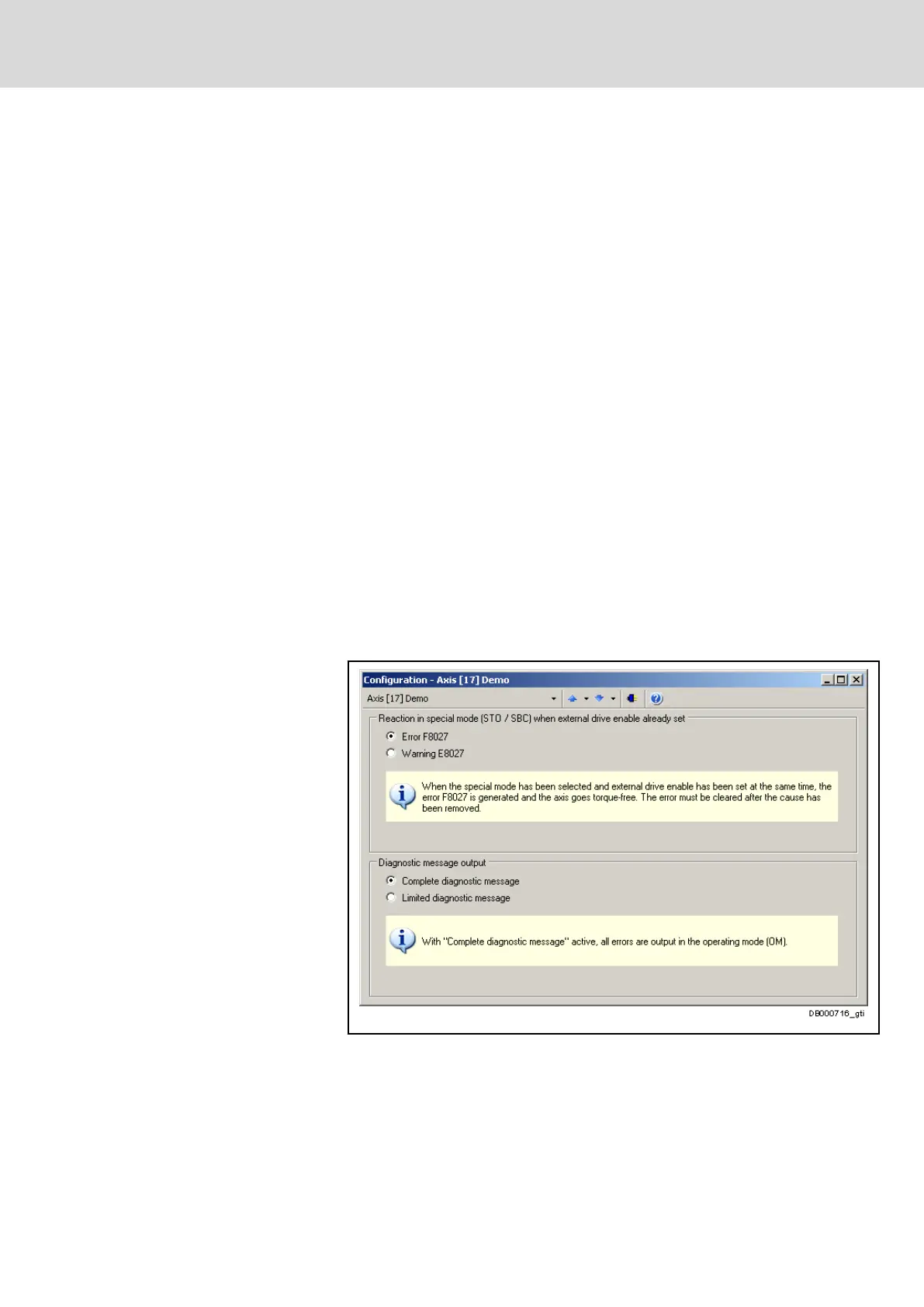 ● Use the field "Reaction in special mode (...) when external drive enable