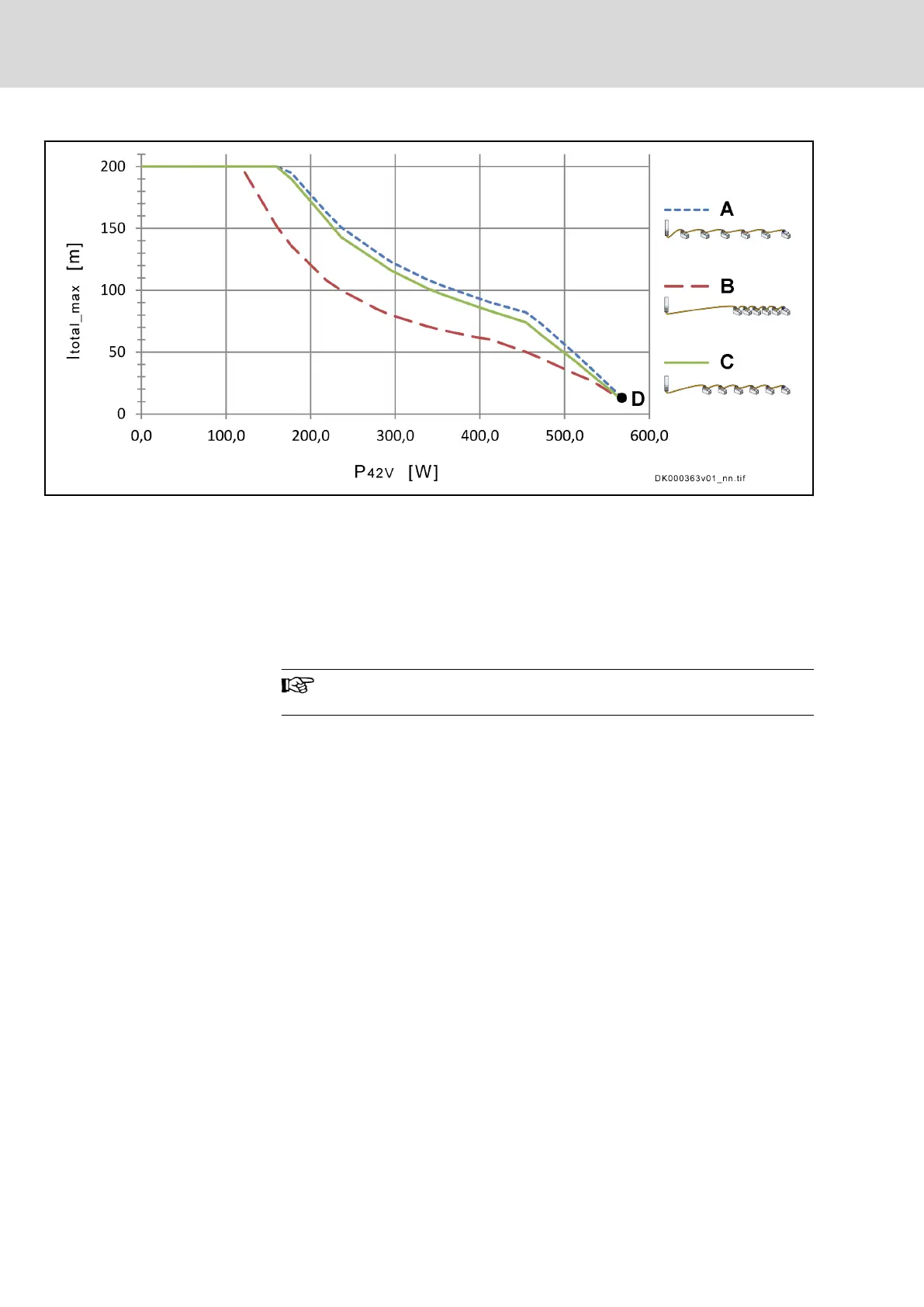 Fig. 7-14: Maximum allowed hybrid cable length of a drive line