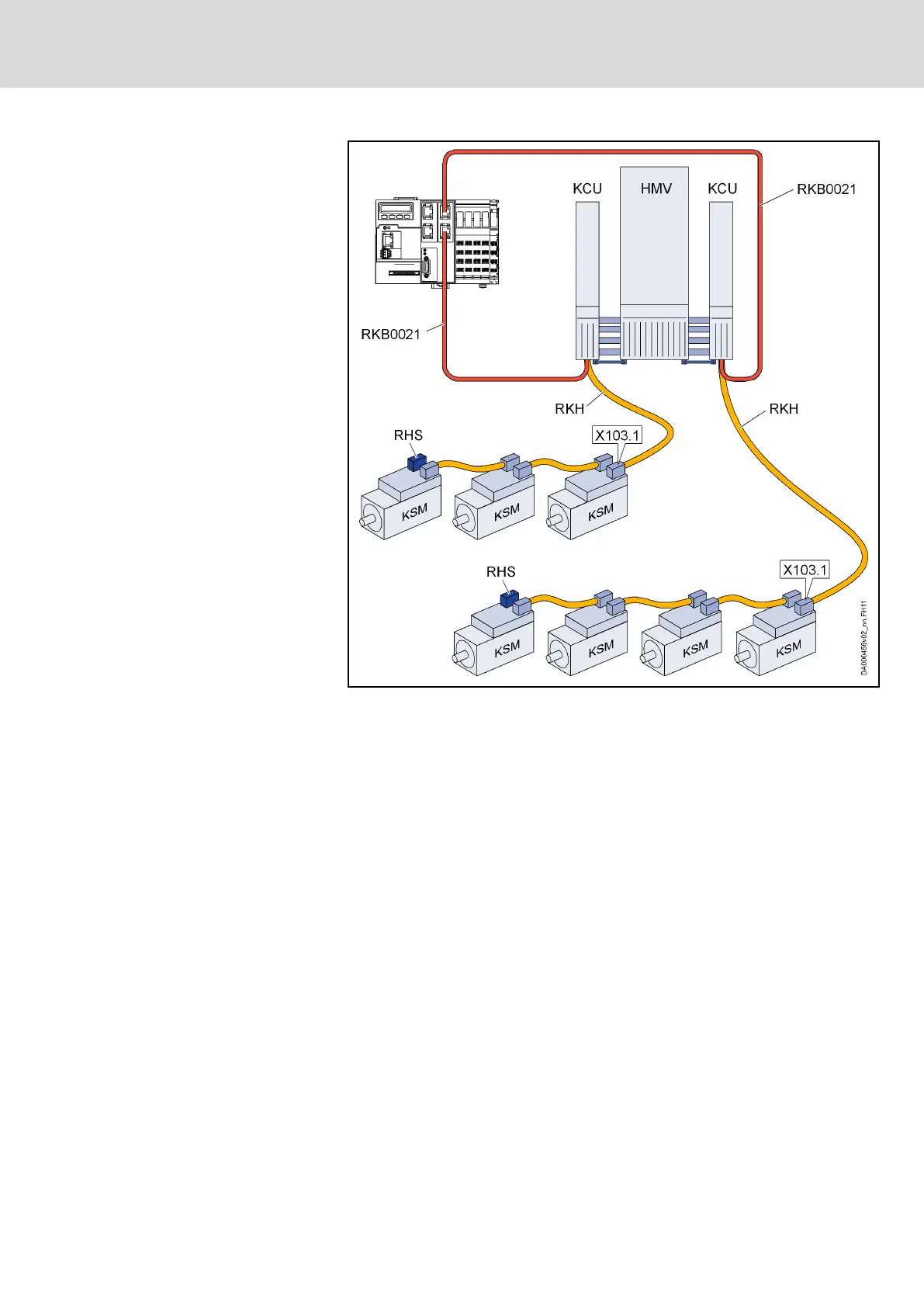 Fig. 9-12: Parallel drive lines with two KCUs and higher-level control unit