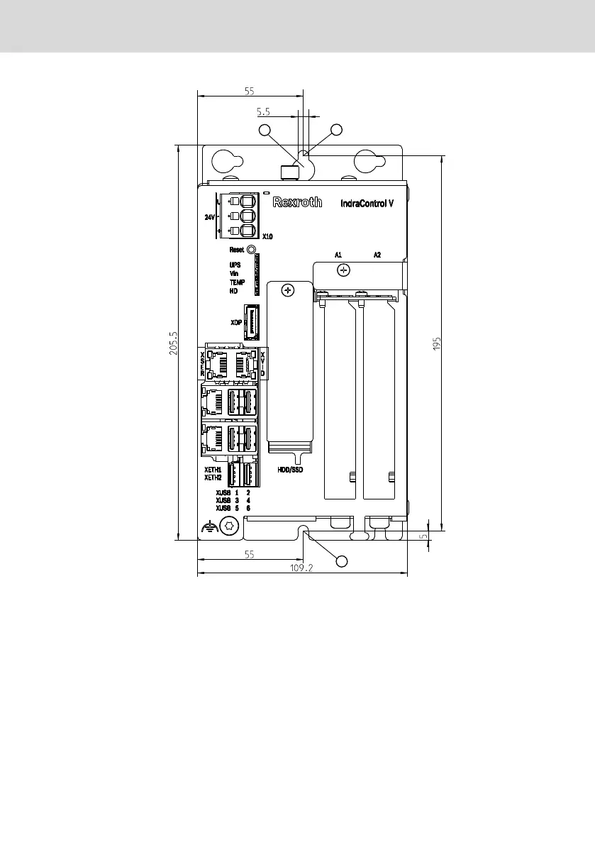 Fig. 10-6: Housing dimensions for devices with two slots, vertical mounting