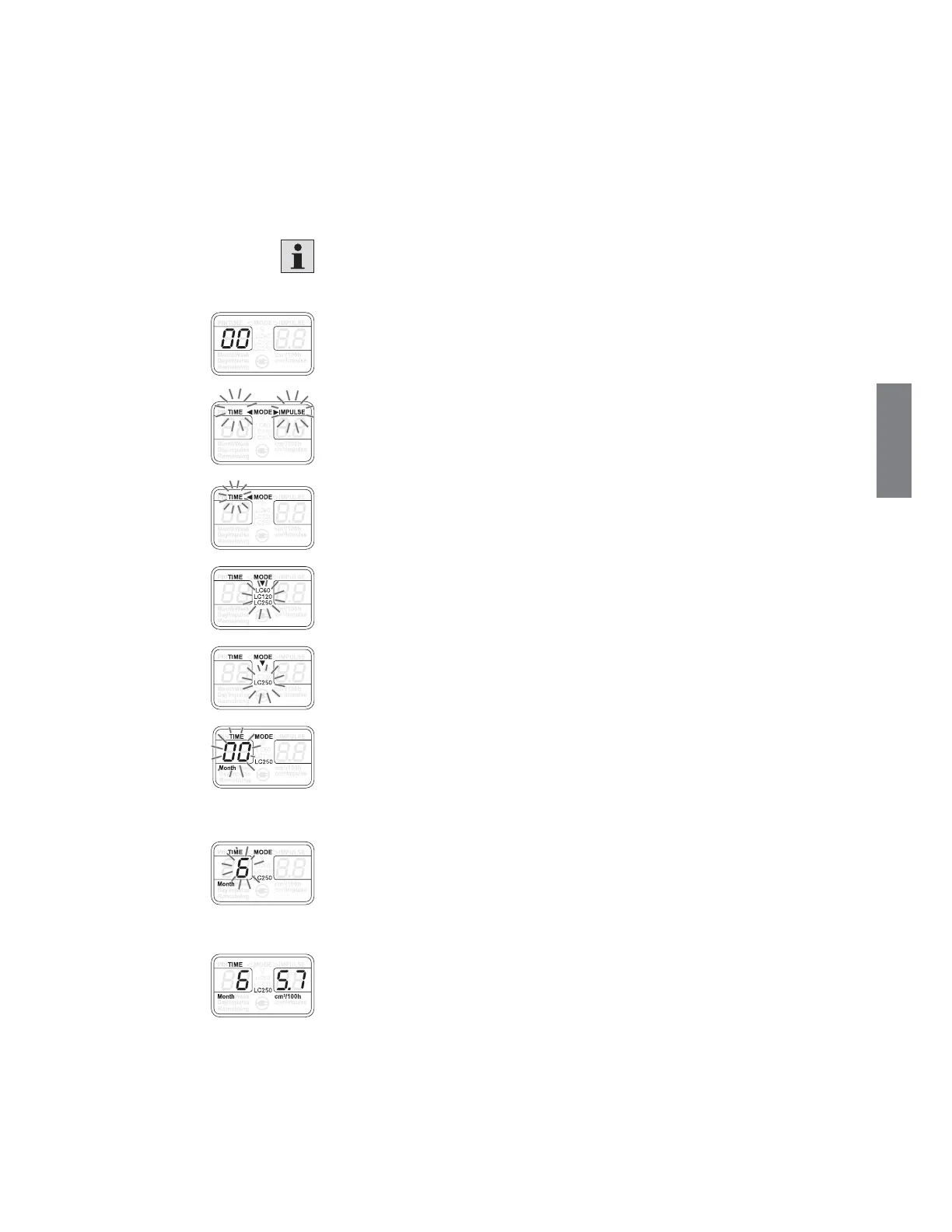 1. Press and hold the SET button (> 5 s), until the modes TIME and PULSE fl ash