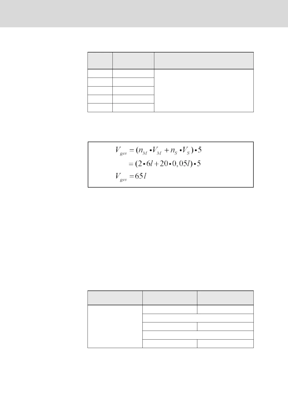 Tab. 10-1: Table motor and hose volume
