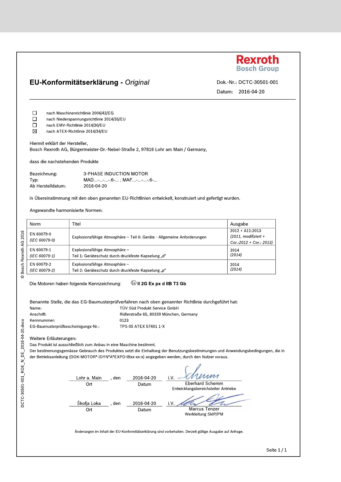 Rexroth MAD and MAF Motors in EX px d Design acc. to ATEX Directive 2014/34/EU