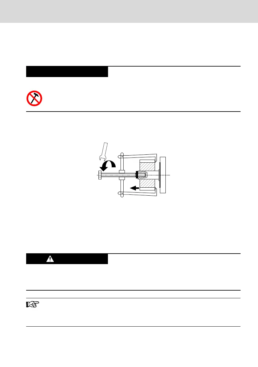 ● Do not strike the shaft end and do not exceed the allowed axial and
