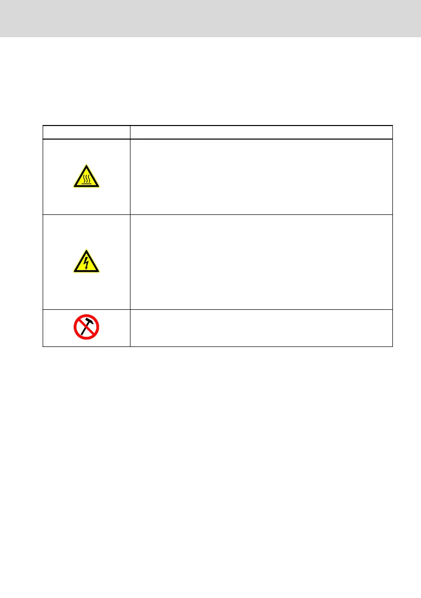 Hot surfaces with temperatures over 60 °C may cause burns