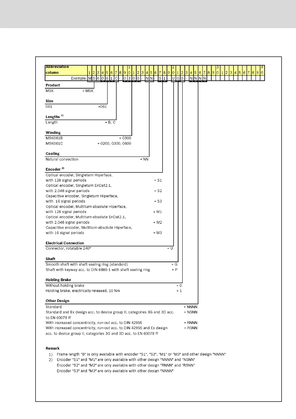 Bosch Rexroth MSK - 7.6 MSK061 Type code