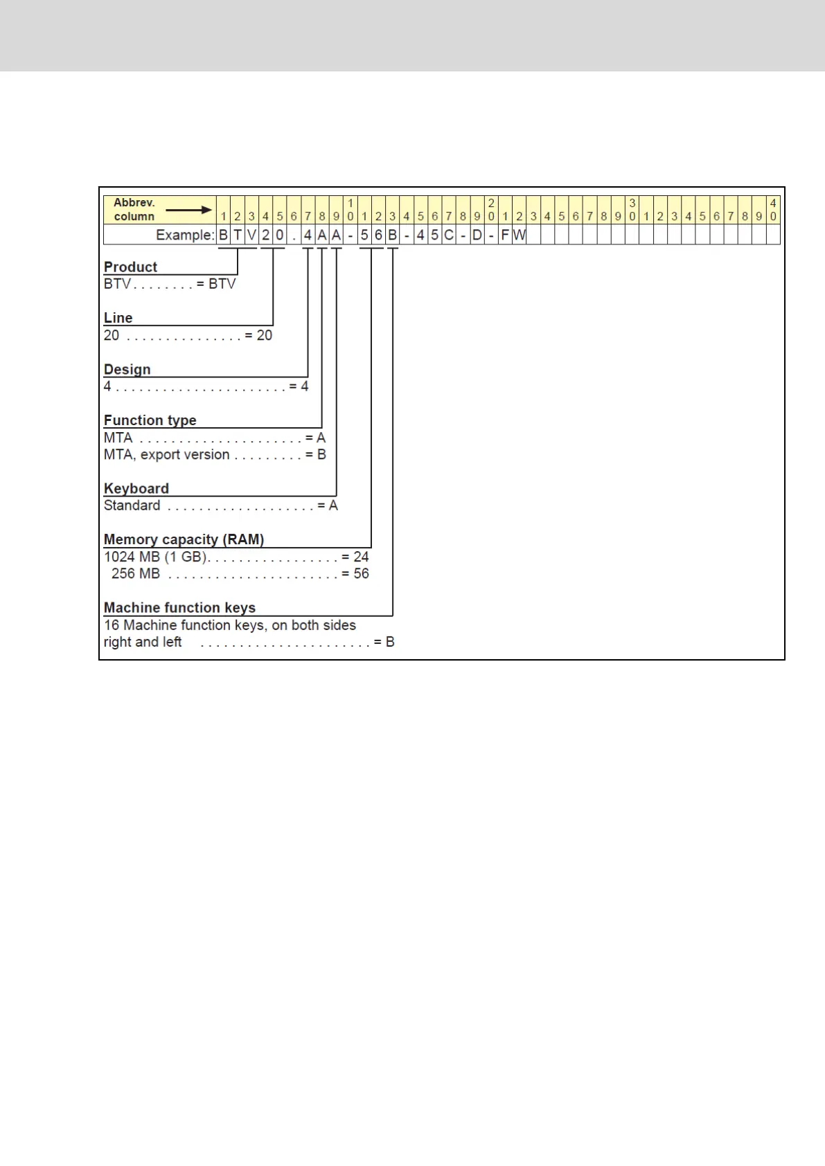 Fig.4-47: Type designation code BTV 20.4, part 1