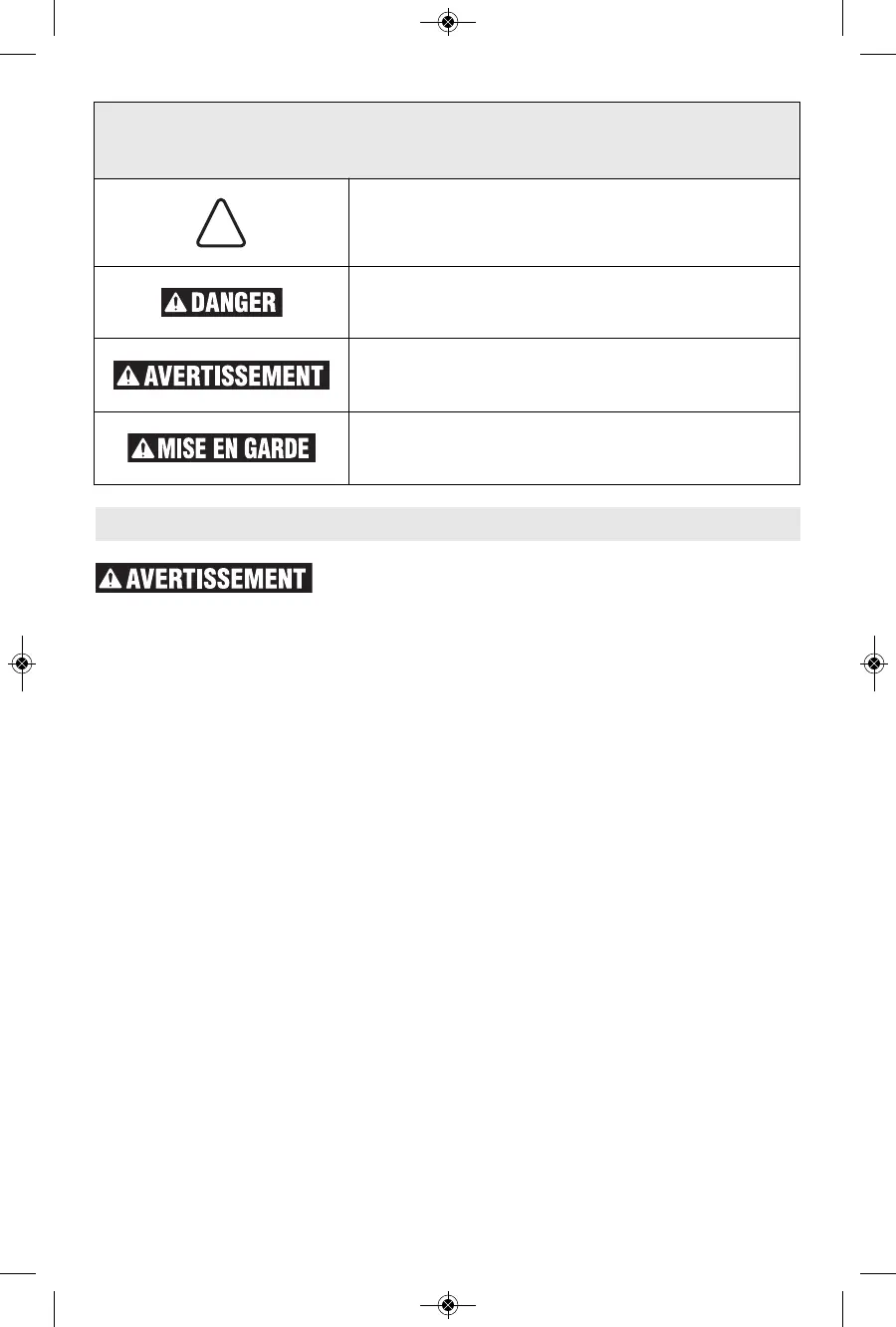 MISE EN GARDE, conjointement avec le symbole d’alerte en