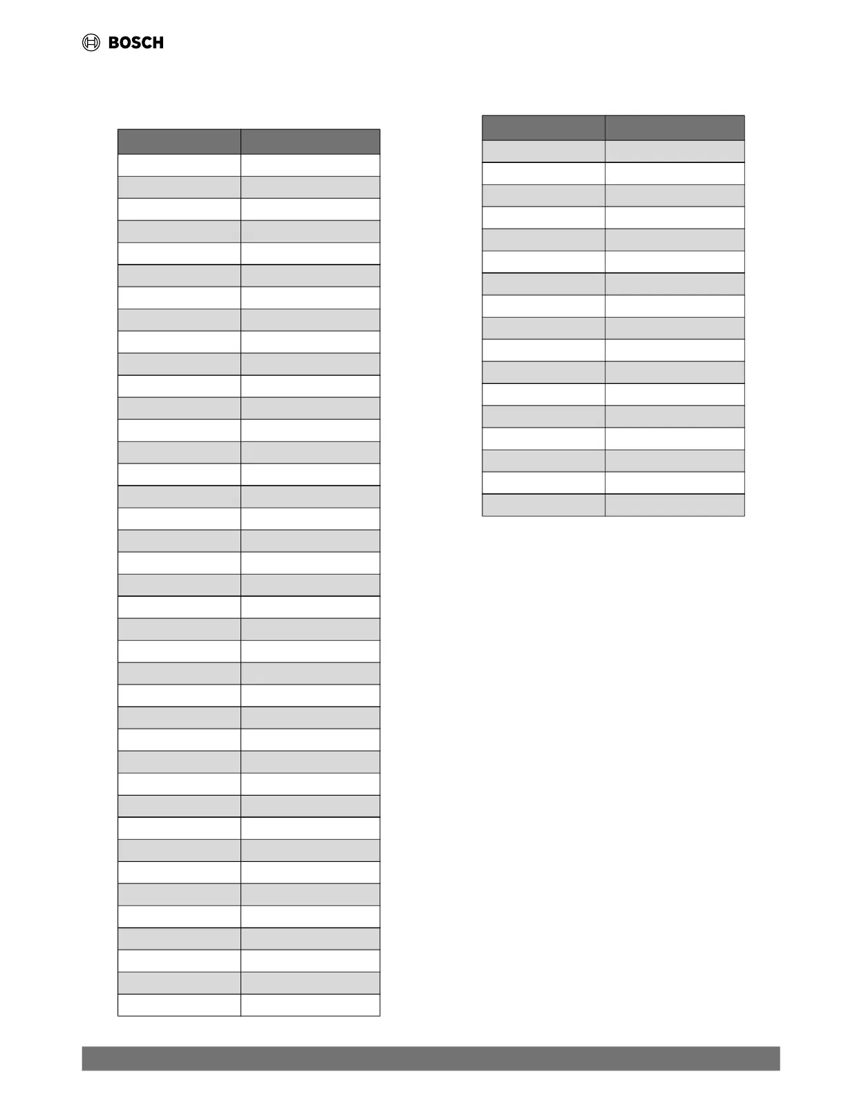 Specification Tables
