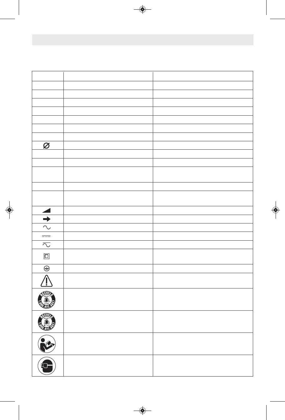 IMPORTANT: Some of the following symbols may be used on your tool. Please study them