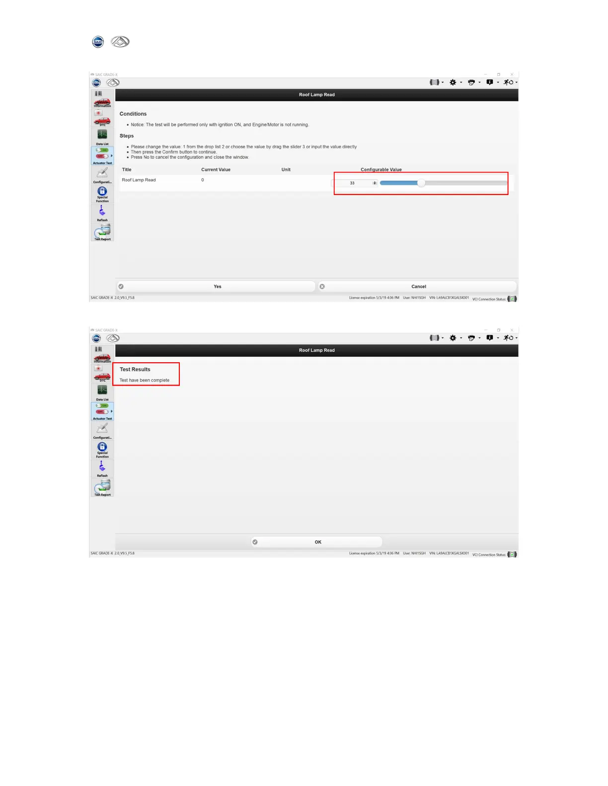 Note: If the test is executed successful, the system will return to the first page and