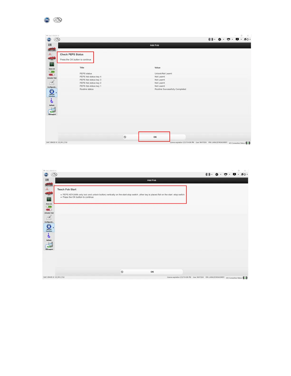 6) Follow the instruction to put key and click【OK】to continue,as shown below: