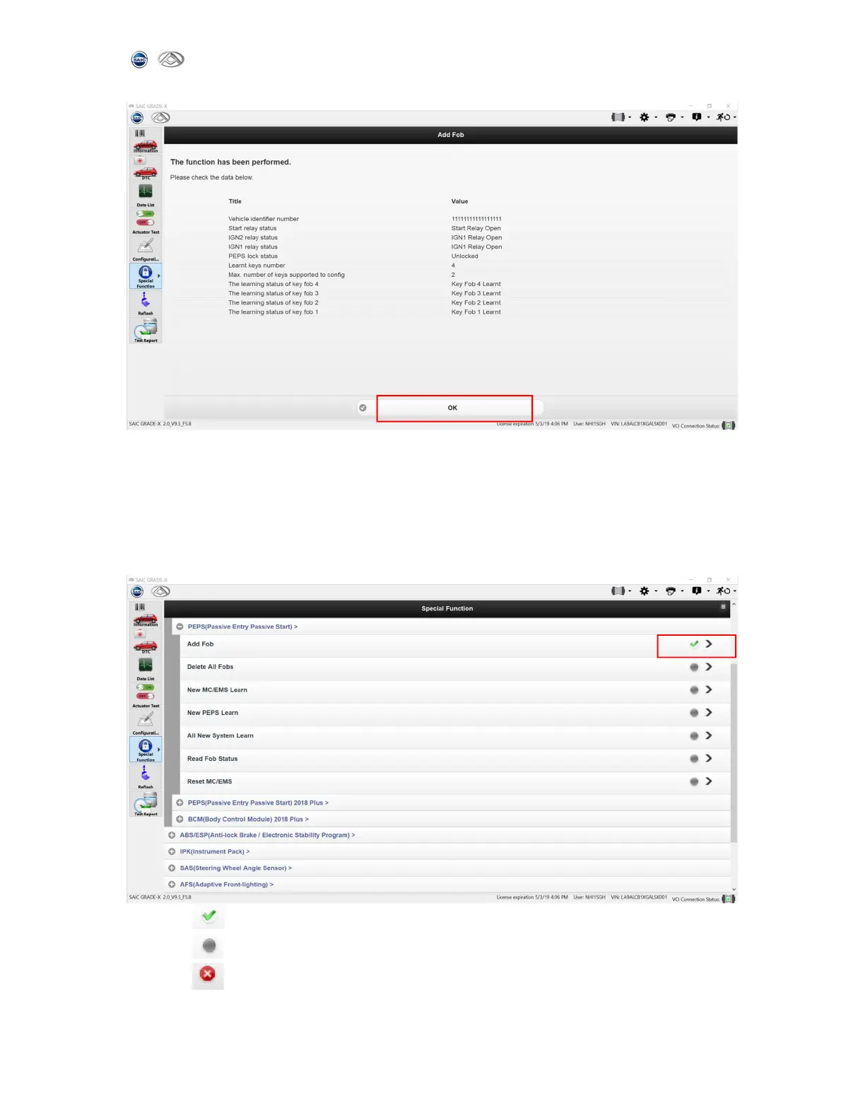 The system will show the test result,as shown below: