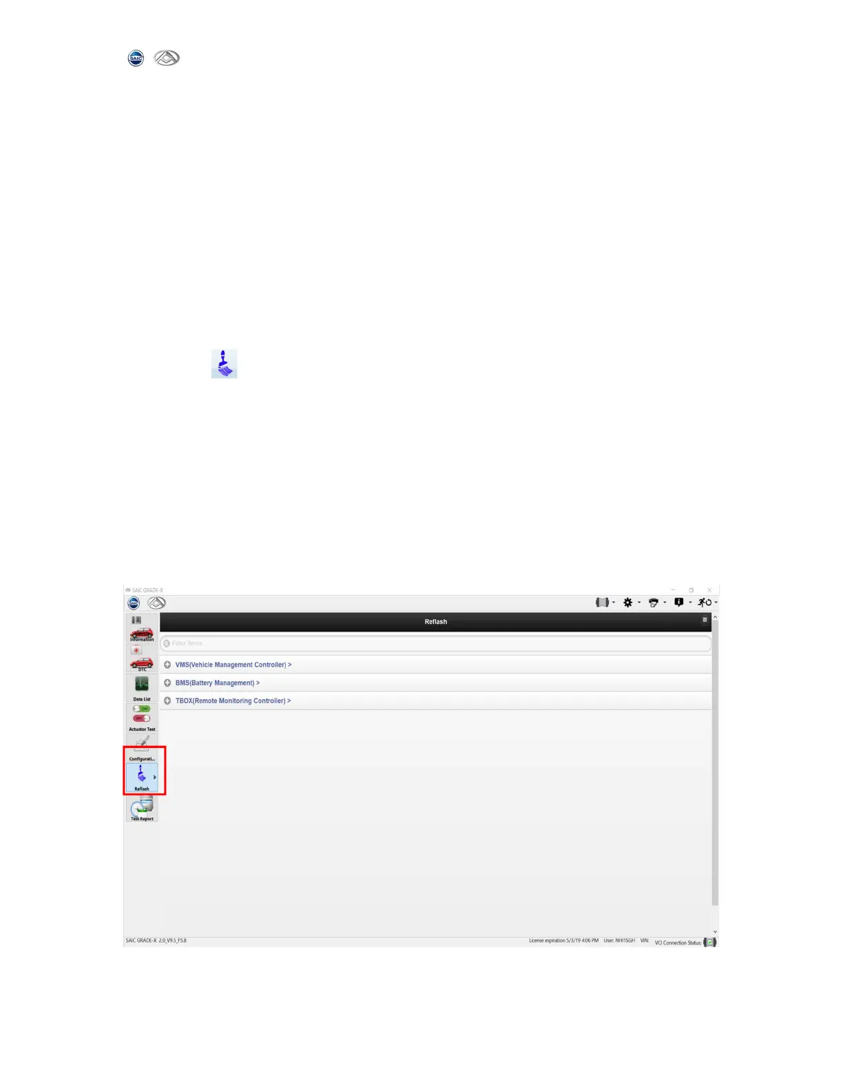 NOTE: The following ECU flashing process is based on VMS(Vehicle Management Controller)