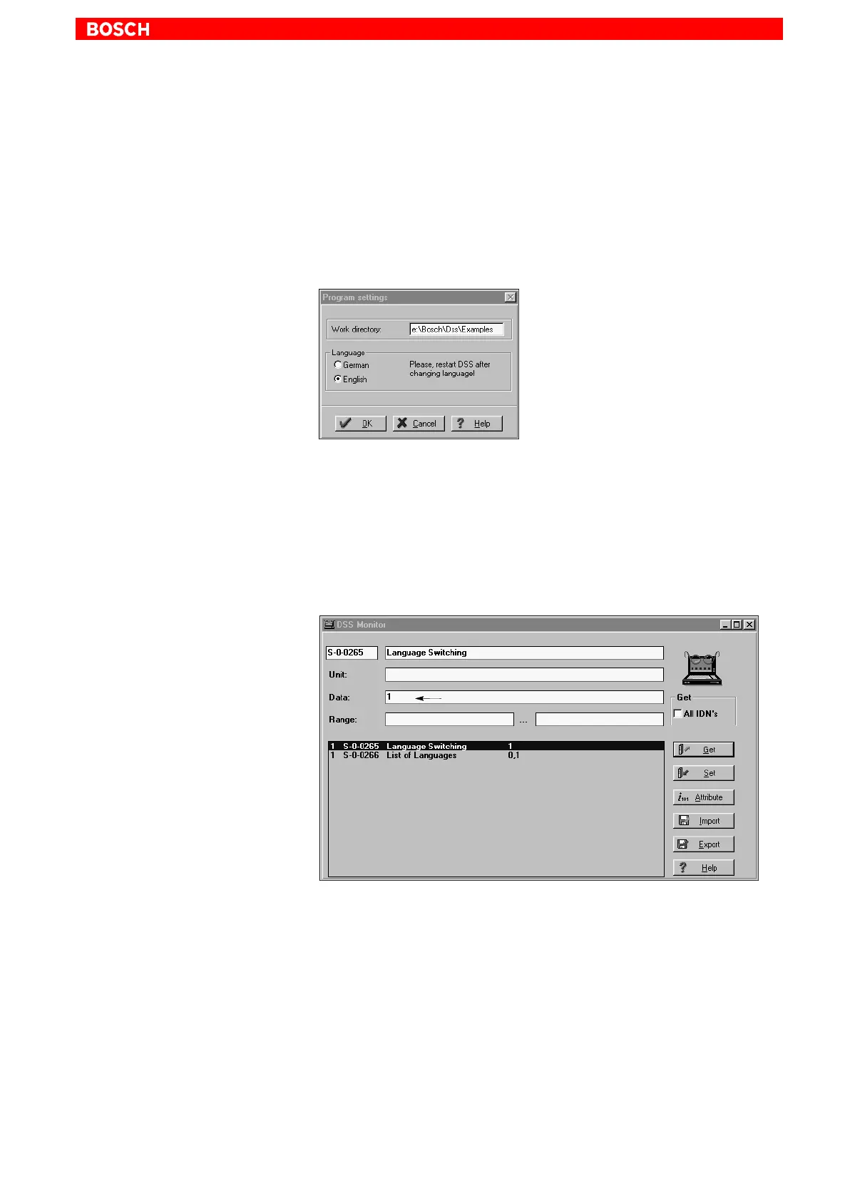 The language of the drive is defined in parameter S-0-0265 via the DSS