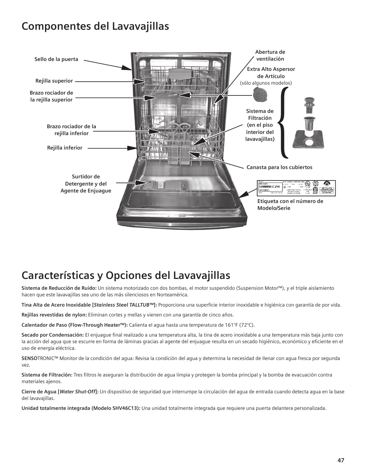 Bosch SGE44C - Car a Cterísticas y Opciones del Lavavajillas; Com Ponentes del Lavavajillas