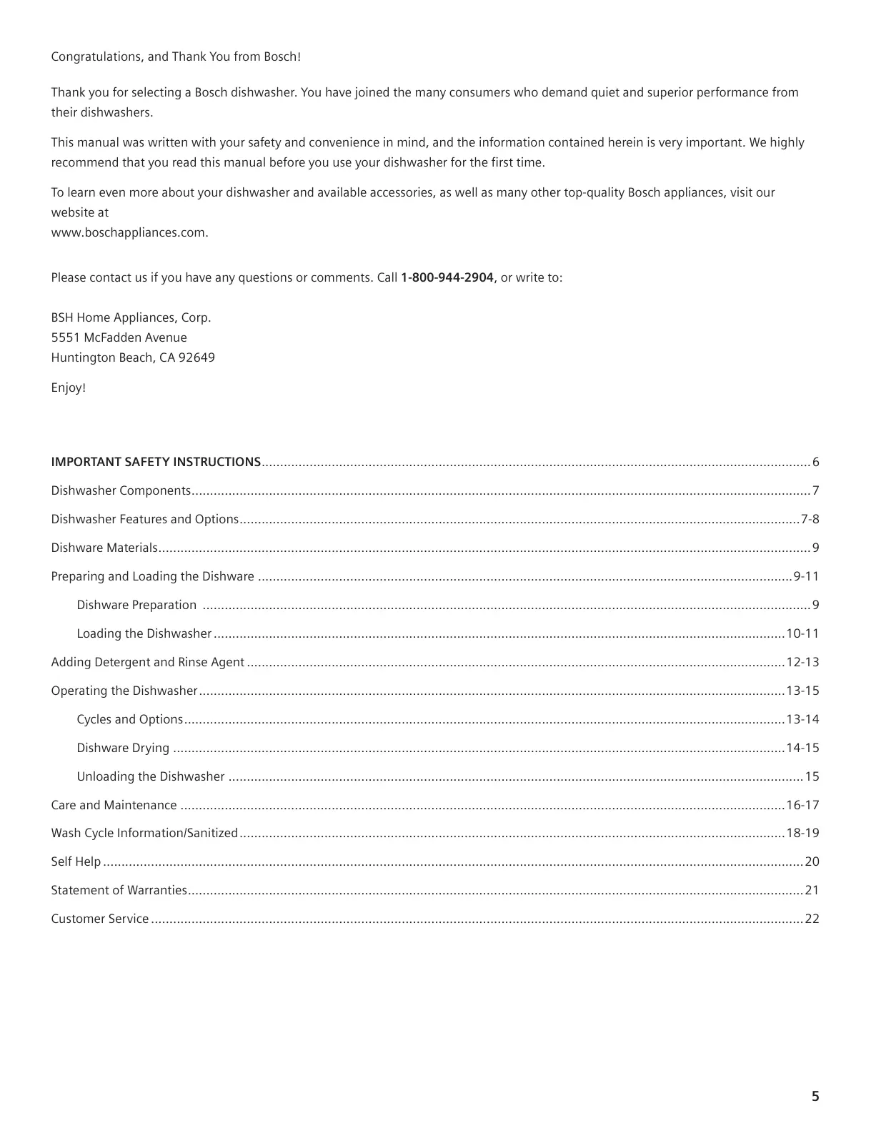 Bosch SGE44C - English; Table of Contents