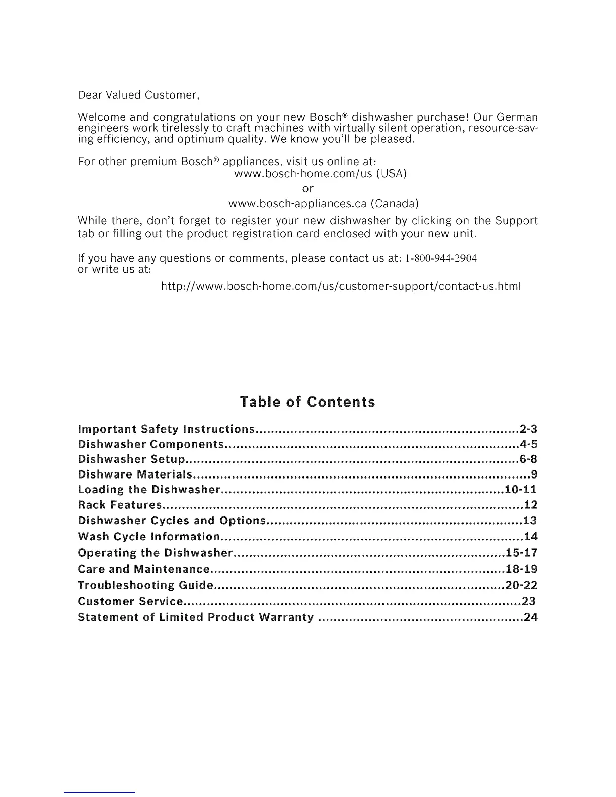Welcome and congratulations on your new Bosch ® dishwasher purchase! Our German