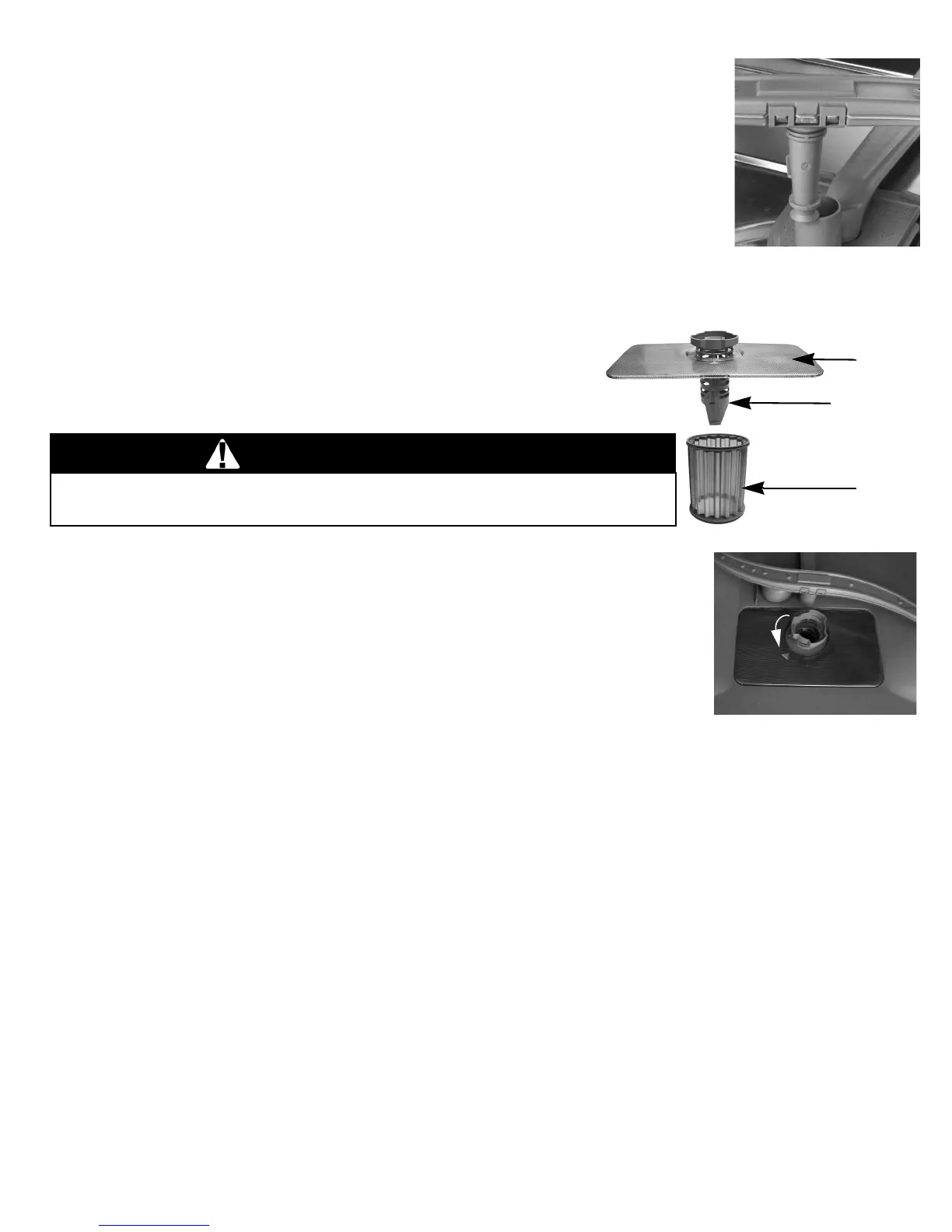 Para volver a instalar el brazo rociador inferior, vuelva a colocar el brazo rociador