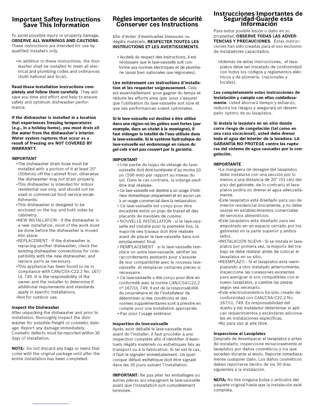 •This dishwasher is intended for indoor