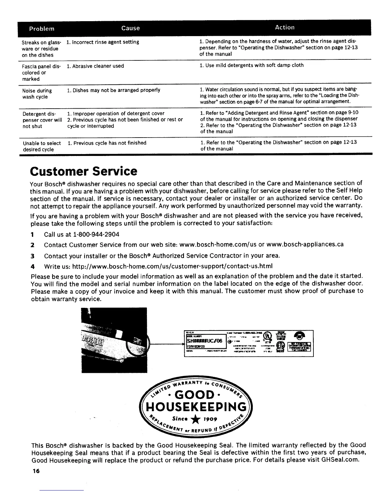 2 Contact Customer Service from our web site: www.bosch-home.com/us or www.bosch-appliances.ca