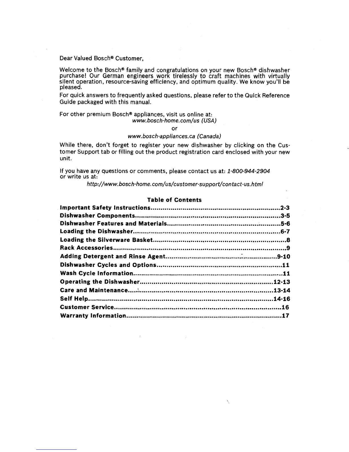 Welcometo the Bosch®familyandcongratulationsonyournewBosch®dishwasher