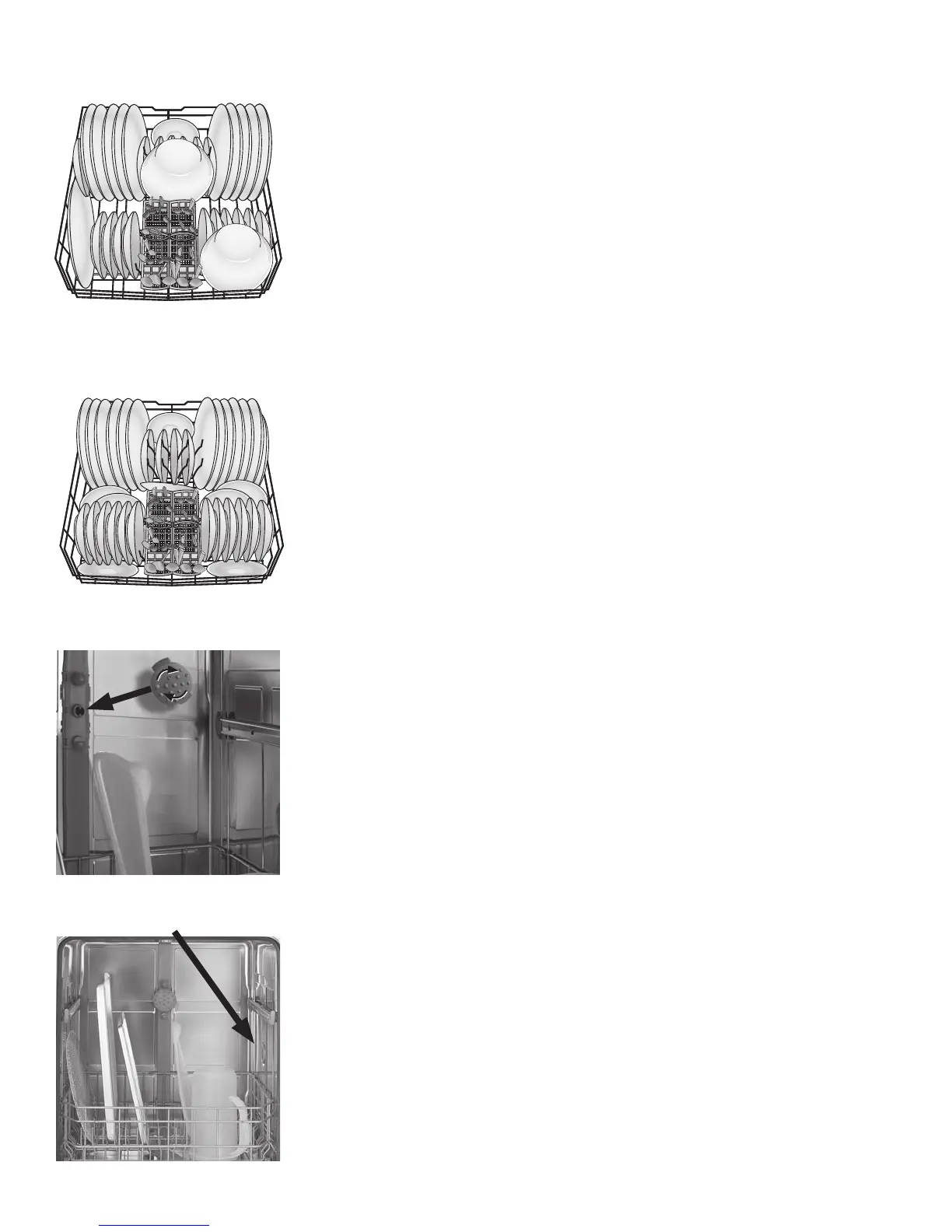 Place large items in the bottom rack. Load pots, pans and bowls upside-down. Figures 6