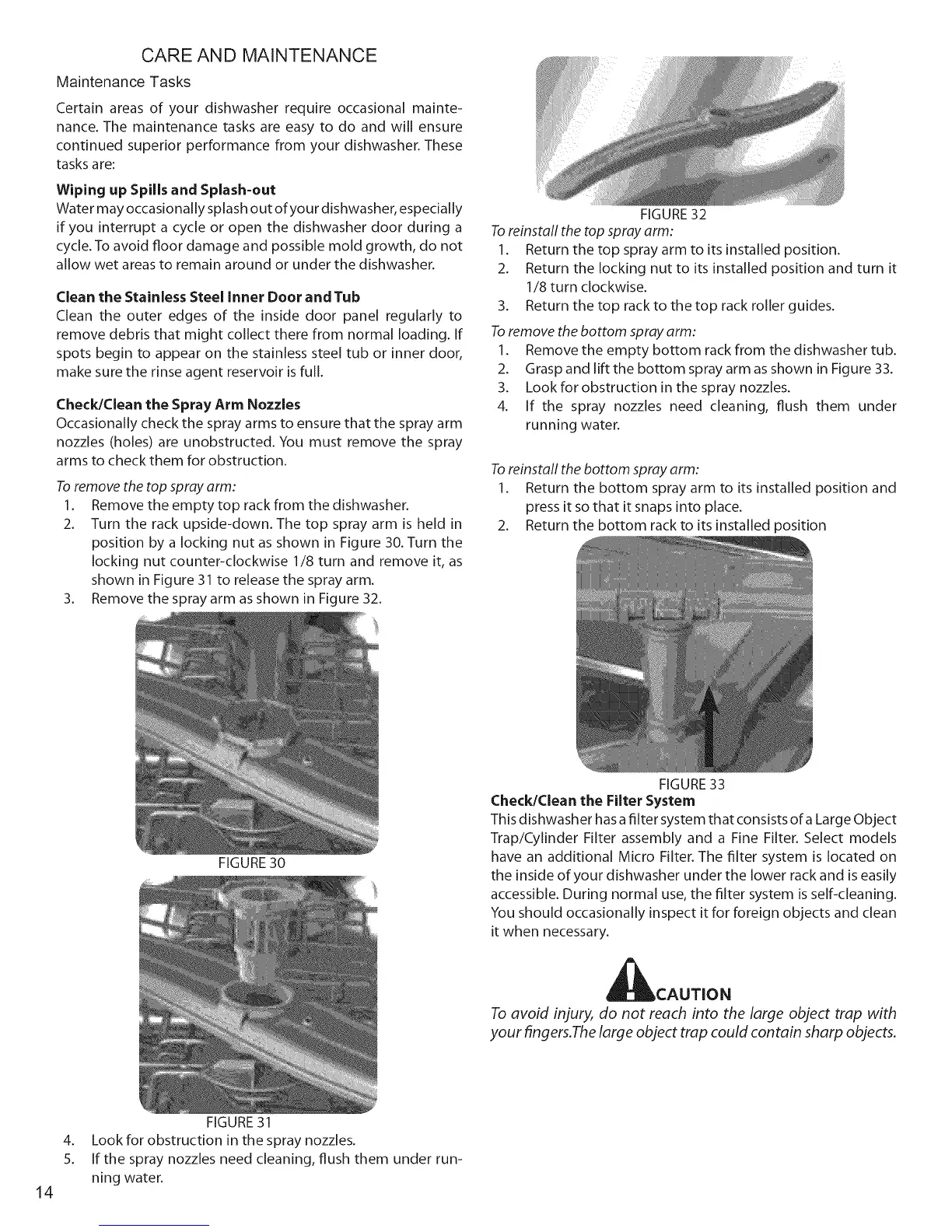 Occasionally check the spray arms to ensure that the spray arm