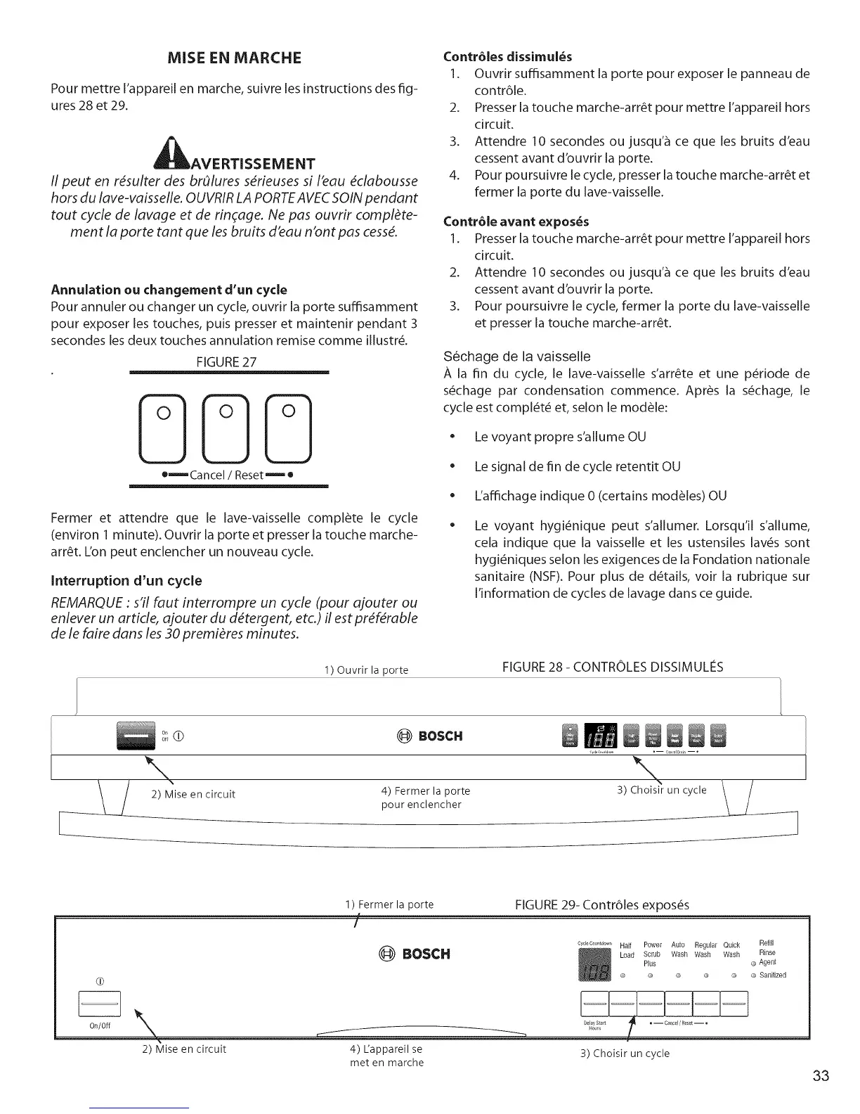 Pour annuler ou changer un cycle, ouvrir la porte suffisamment