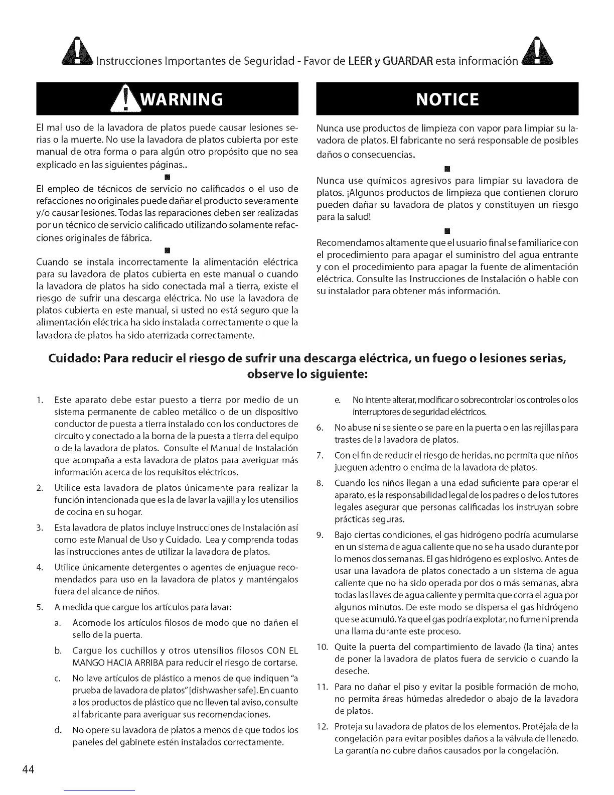 rias o la muerte. No use la lavadora de platos cubierta por este