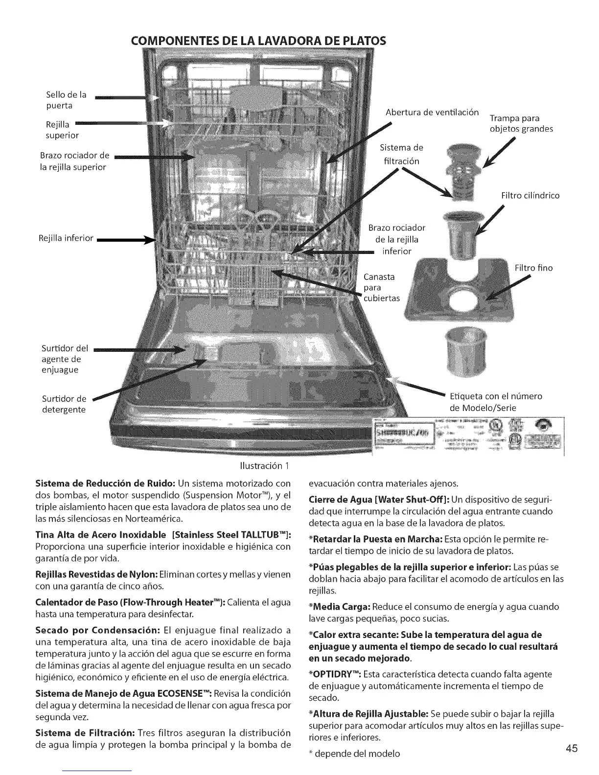 COMPONENTES DE LA LAVADORA DE PLATOS