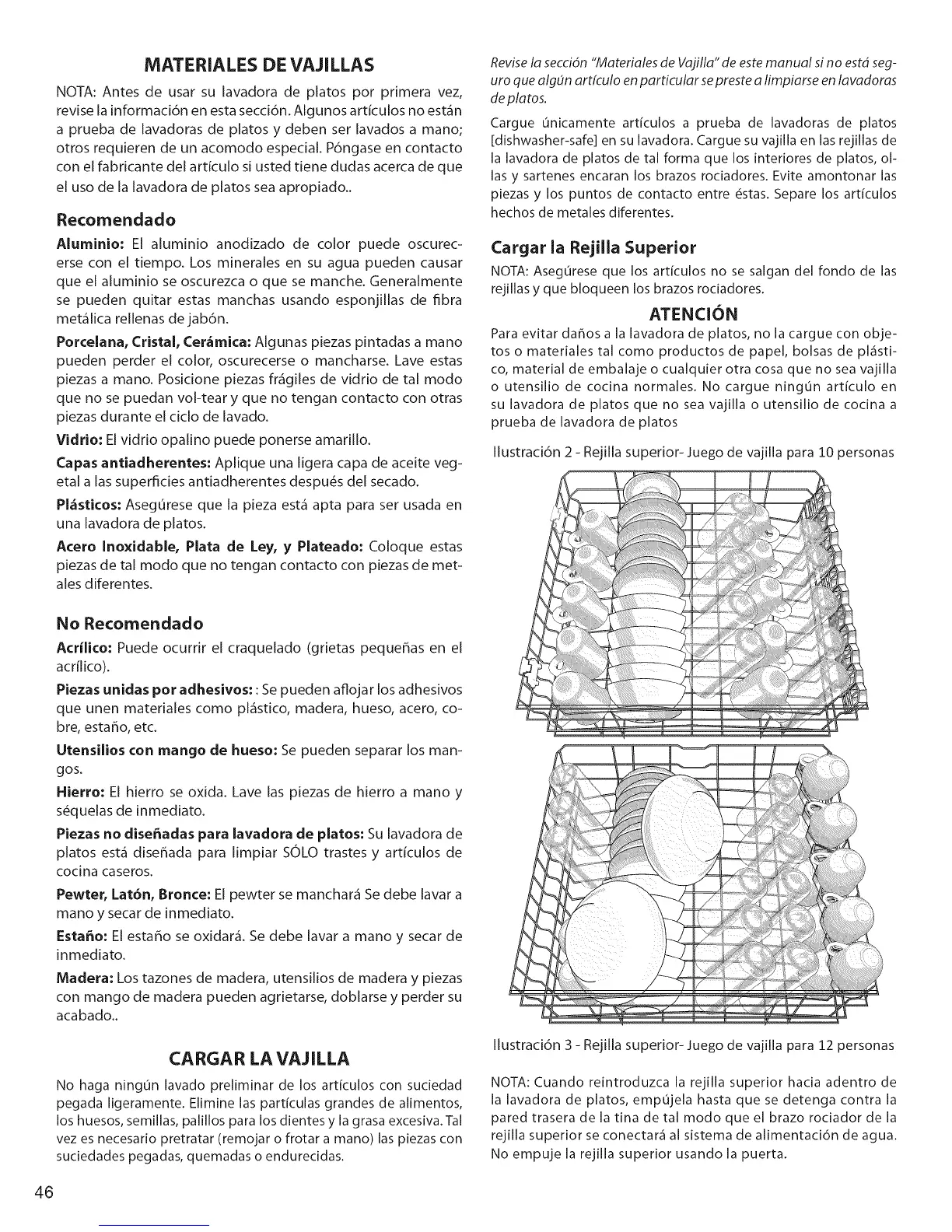 Revisela seccidn "Materiales de Vajilla" de este manual si no estd seg-