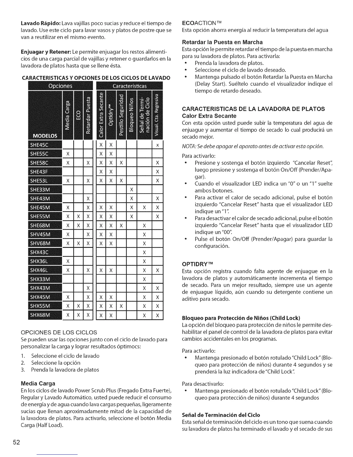 CARACTERISTICAS Y OPCIONES DE LOS ClCLOS DE LAVADO