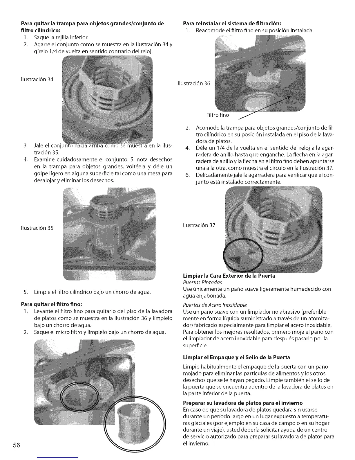 Para reinstalar el sistema de filtraci6n: