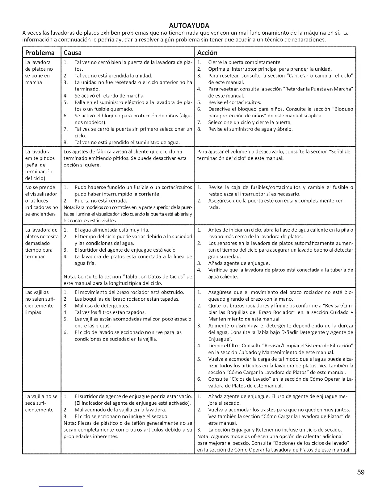 en la secci6n de C6mo Operar la Lavadora de Platos de este manual.