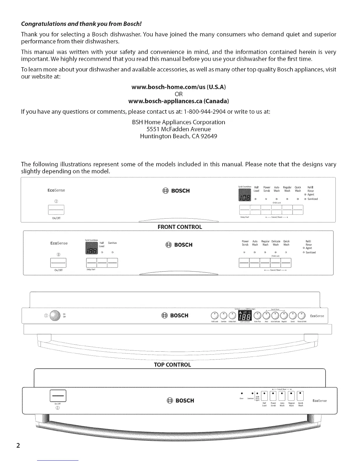 Thank you for selecting a Bosch dishwasher. You have joined the many consumers who demand quiet and superior